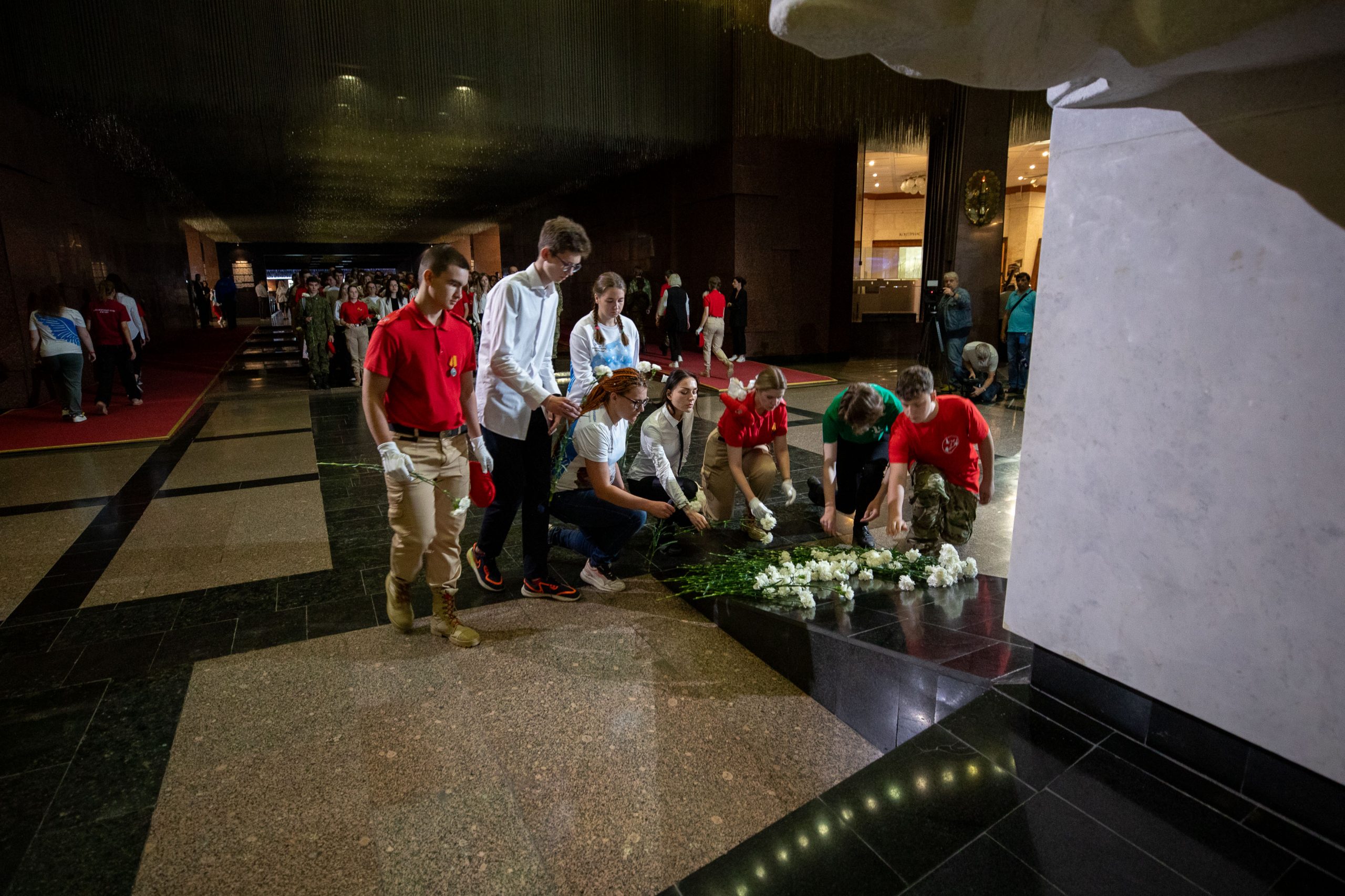 Активисты, государственные и общественные деятели собрались в Зале Памяти и Скорби, чтобы возложить белые гвоздики к мемориалу в память о погибших детях.