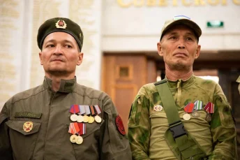 В Зале Славы участники мероприятия увидели 3D-инсталляцию «Дорога к Победе», после чего состоялась торжественная церемония награждения ветеранов легендарной бригады, воевавшей в Чечне.