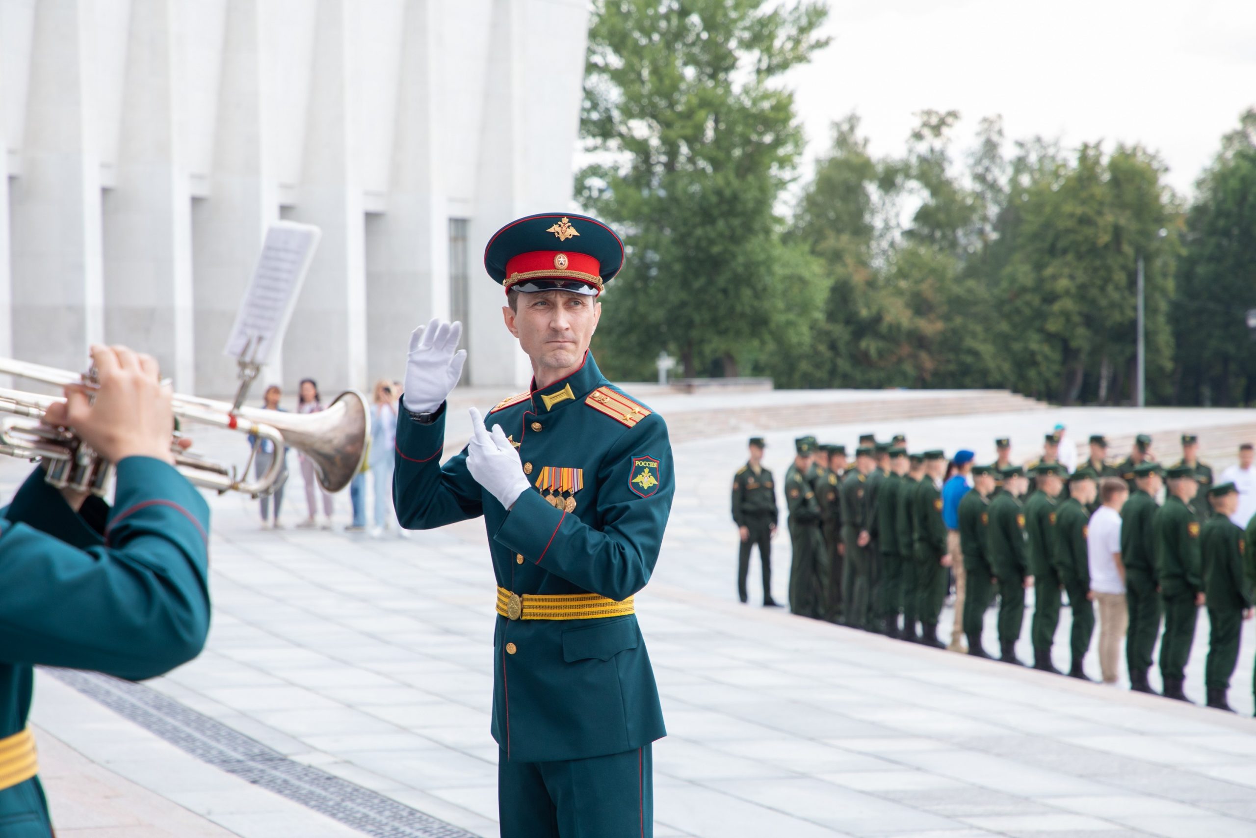 В церемонии приняли участие представители волонтерских и молодежных организаций, военных образовательных учреждений и оркестр Военного университета имени князя Александра Невского Министерства обороны страны.