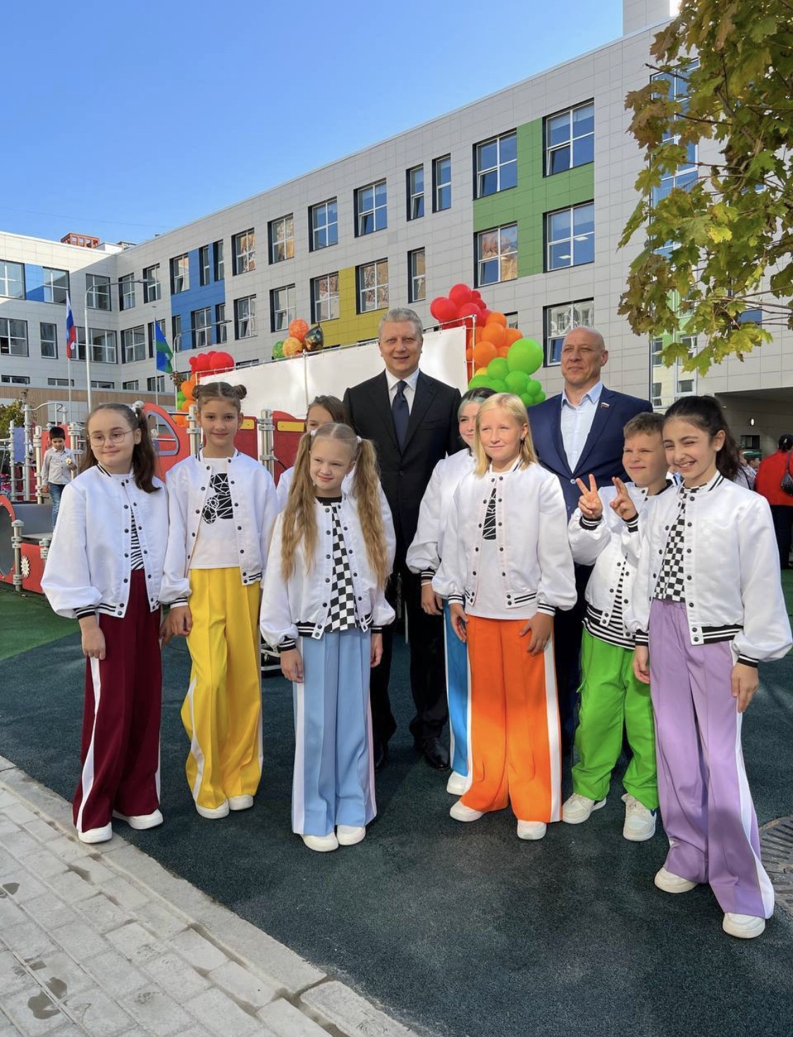 В Воронеже 1 сентября открыла свои двери Мегашкола — самое большое учебное заведение в России. На торжественном открытии победители проекта «Главные детские песни» Амелия Надточий и Дмитрий Беликов исполнили песню «Первоклашки».
