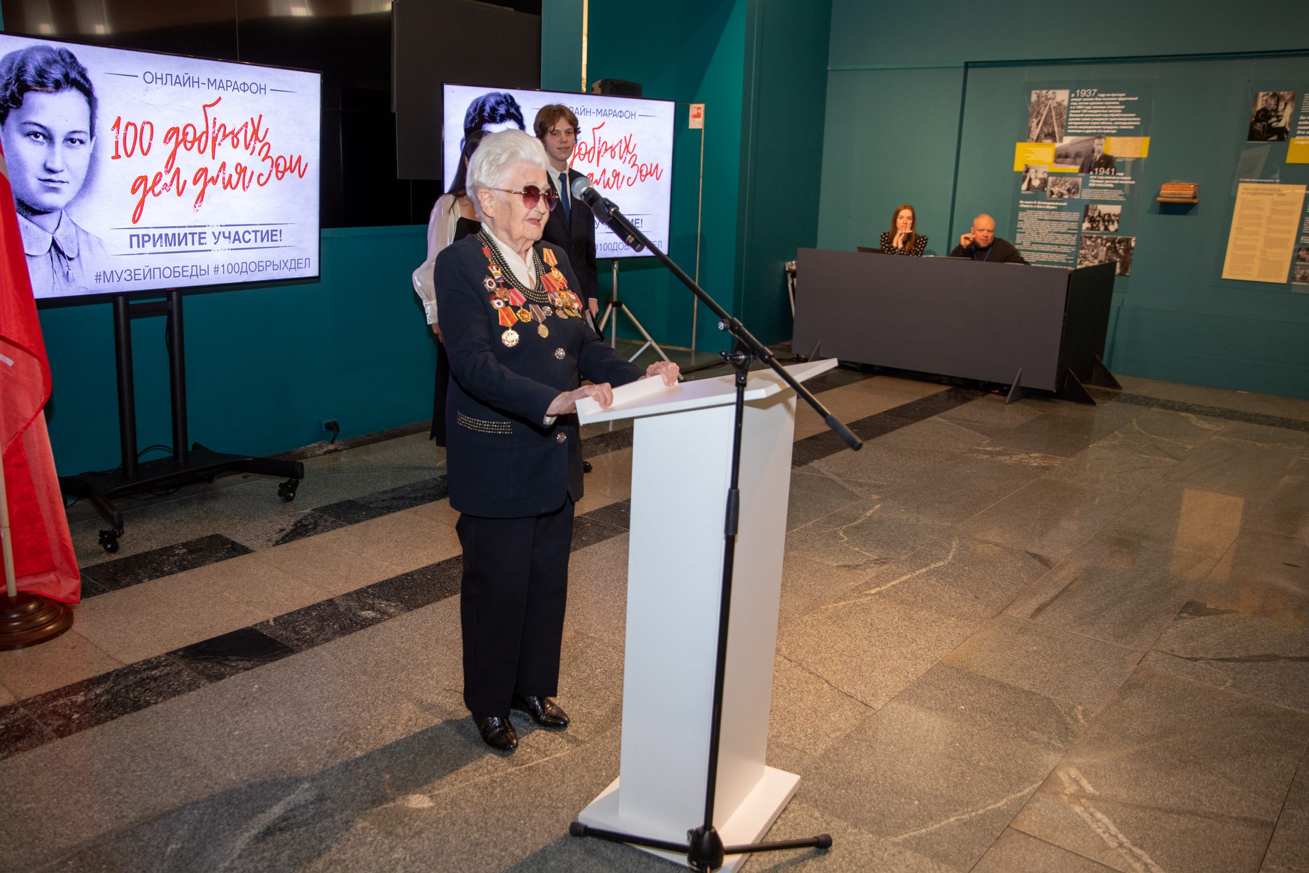 Музей Победы запустил онлайн-марафон «100 добрых дел для Зои». О старте акции на открытии выставки, посвященной 100-летию Зои Космодемьянской, объявила ветеран Великой Отечественной войны, гвардии старший сержант, санинструктор 290-го гв. стрелкового полка Мария Михайловна Рохлина.