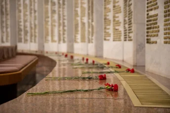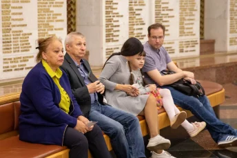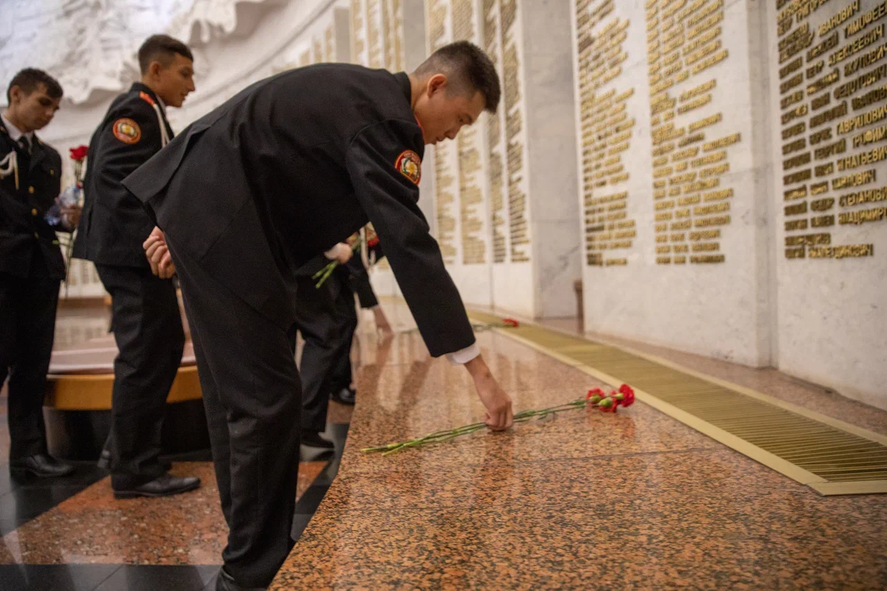 Виктор Сеничкин рассказал гостям о подвигах некоторых из Героев Новороссии, после чего участники мероприятия возложили цветы в Зале Славы в память о погибших в Великой Отечественной войне.