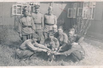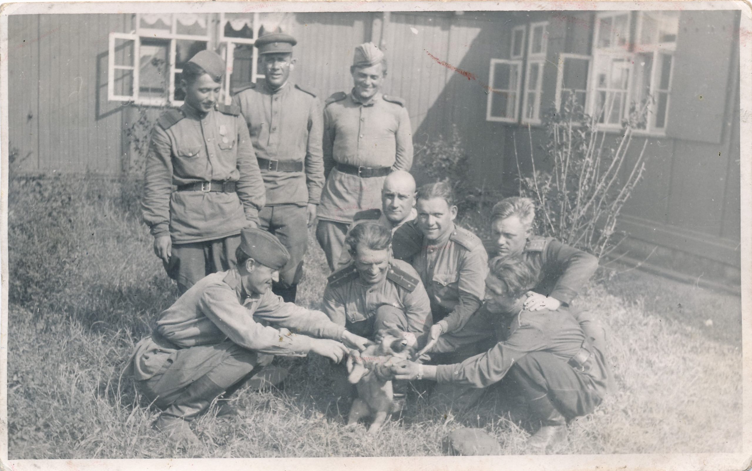 - Александр Ванин сидит слева на отдыхе с товарищами, 1945 год. Фото: РИА «Победа РФ»
