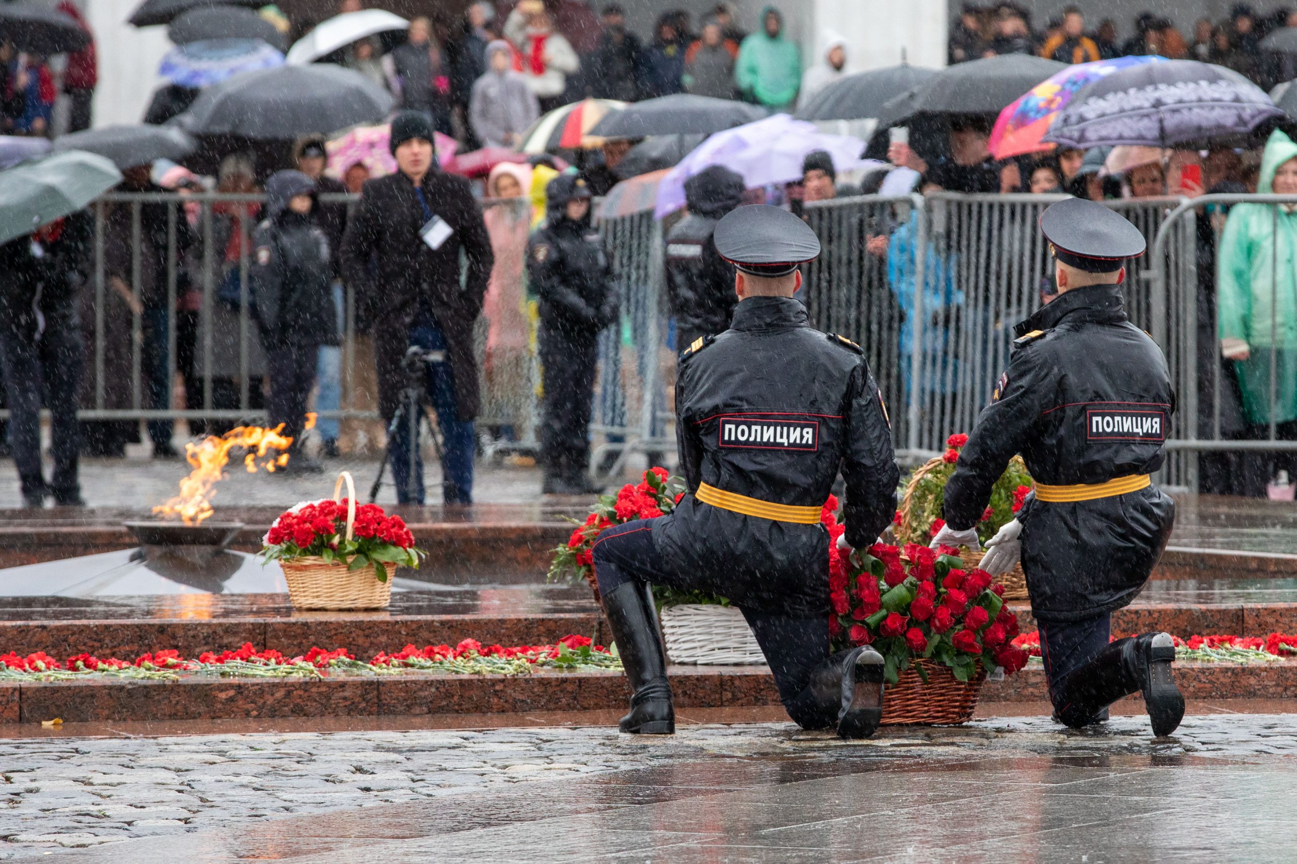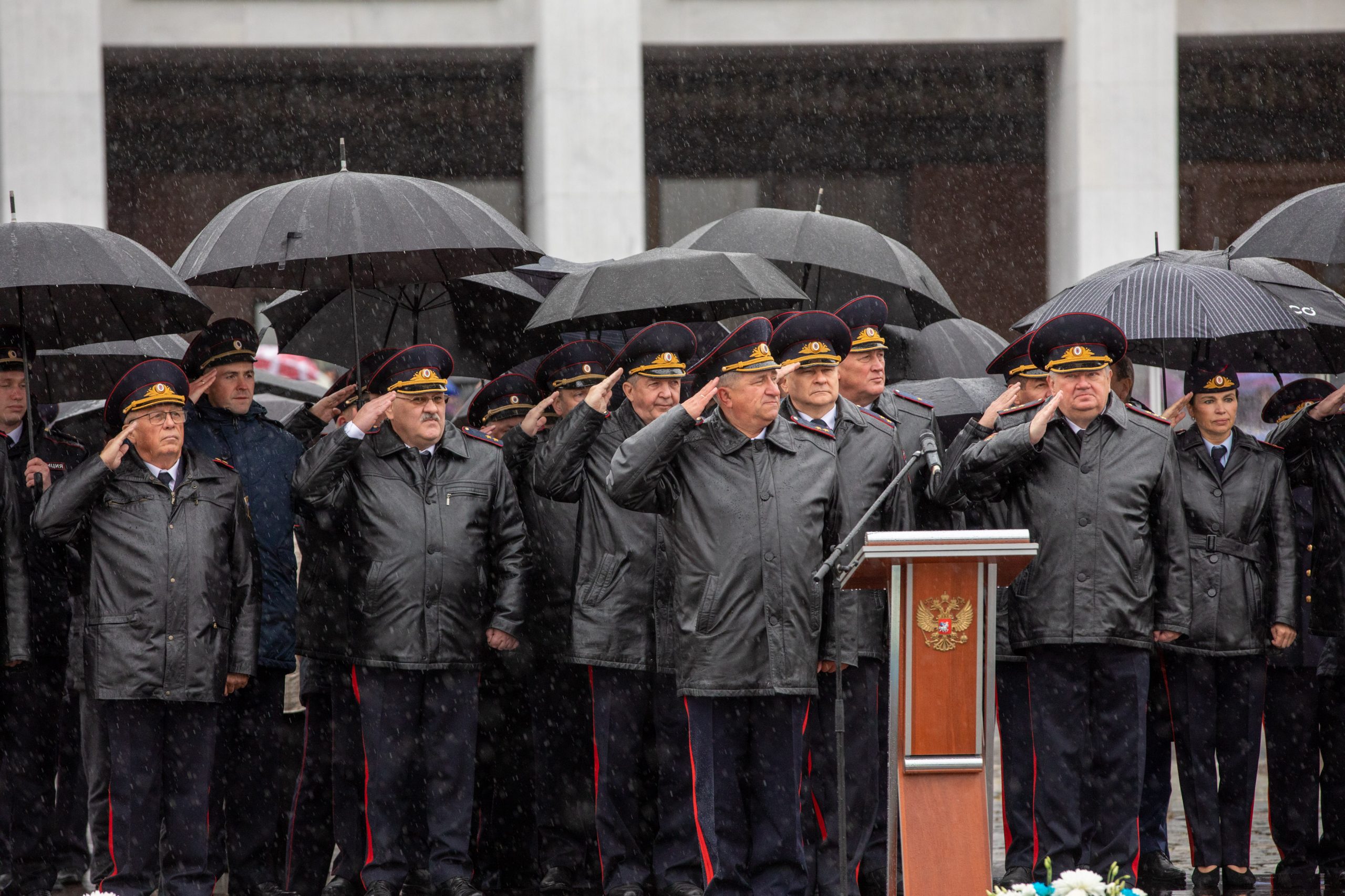 За тем, как проходит церемония и принимают присягу будущие офицеры полиции, наблюдали их родственники и друзья, а также посетители Музея Победы и Парка Победы.