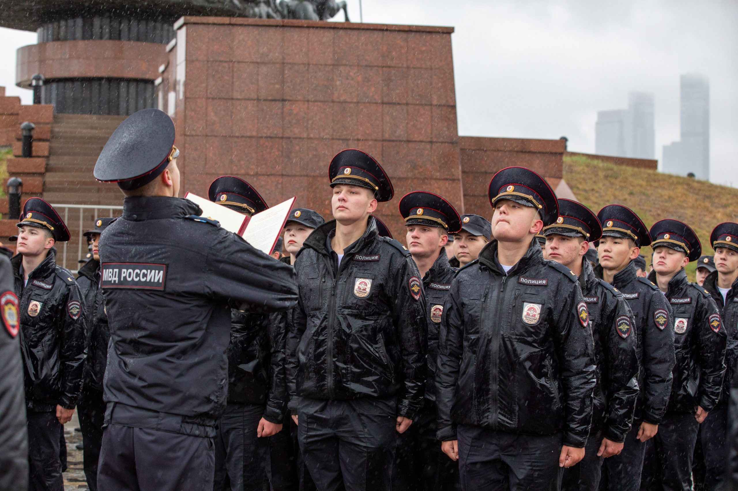 У стен Музея Победы состоялась торжественная церемония принятия присяги первокурсниками Московского университета МВД им. Кикотя.