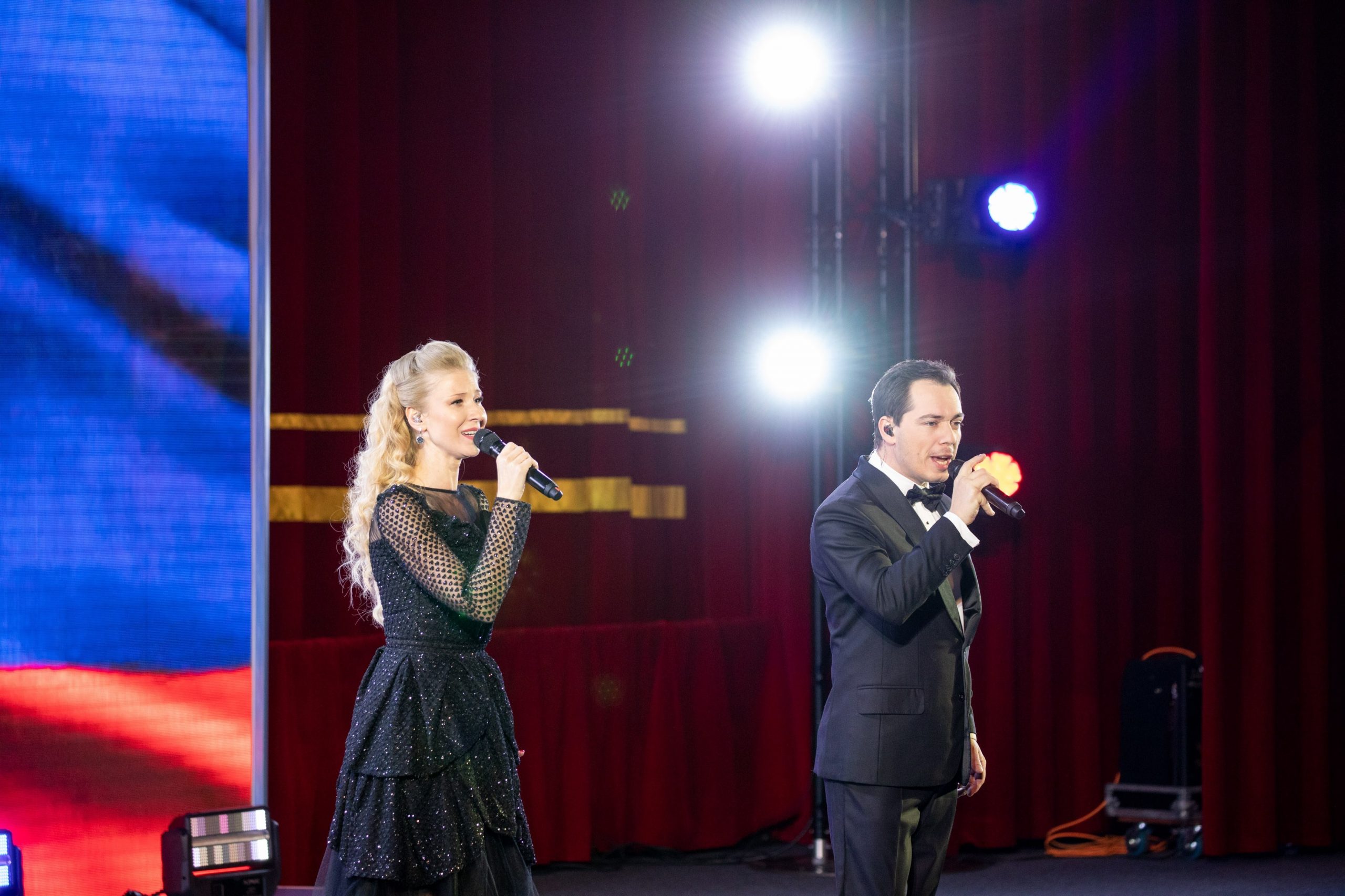 В праздничном выступлении приняли участие заслуженная артистка России Ольга Кормухина, Джанго, артисты проектов «Главные детские песни» и «Движение патриотической песни», вокалисты академии современной музыки Алексея Белова и Ольги Кормухиной, артисты и исполнители из ЛНР, ДНР, Запорожской и Херсонской областей. Провели выступление Родион Газманов и Василина Краснослободцева.