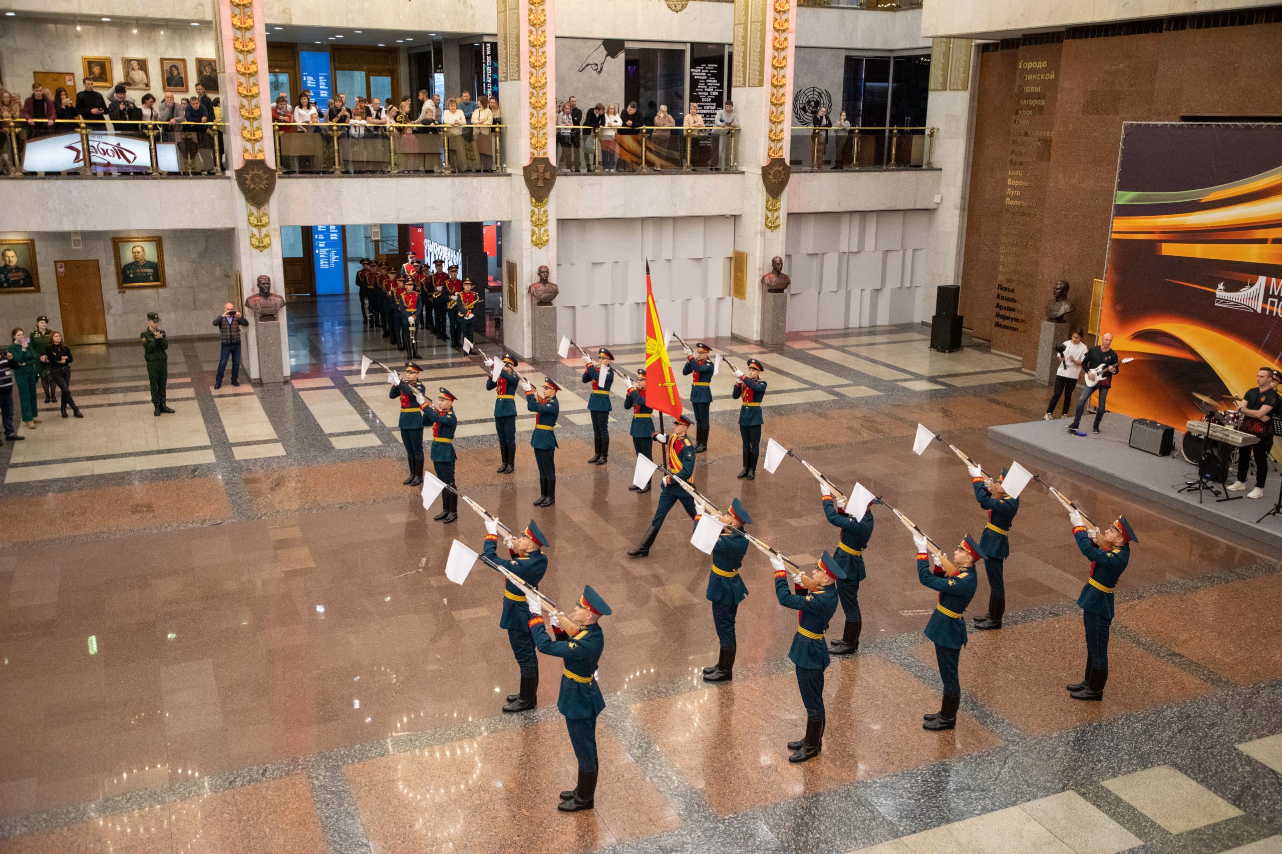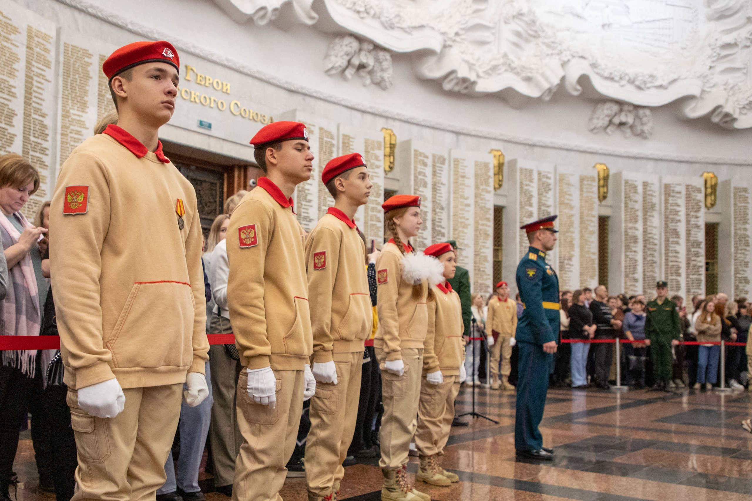 Под величественным сводом Зала Славы прозвучали слова клятвы быть верным Отечеству и защищать свободу и независимость нашей страны. Поддержать новобранцев и поздравить их с важным событием приехали родственники и близкие. Завершилось мероприятие ярким показательным выступлением Почетного караула. Преображенцы исполнили композицию, состоящую из строевых приемов с карабинами.