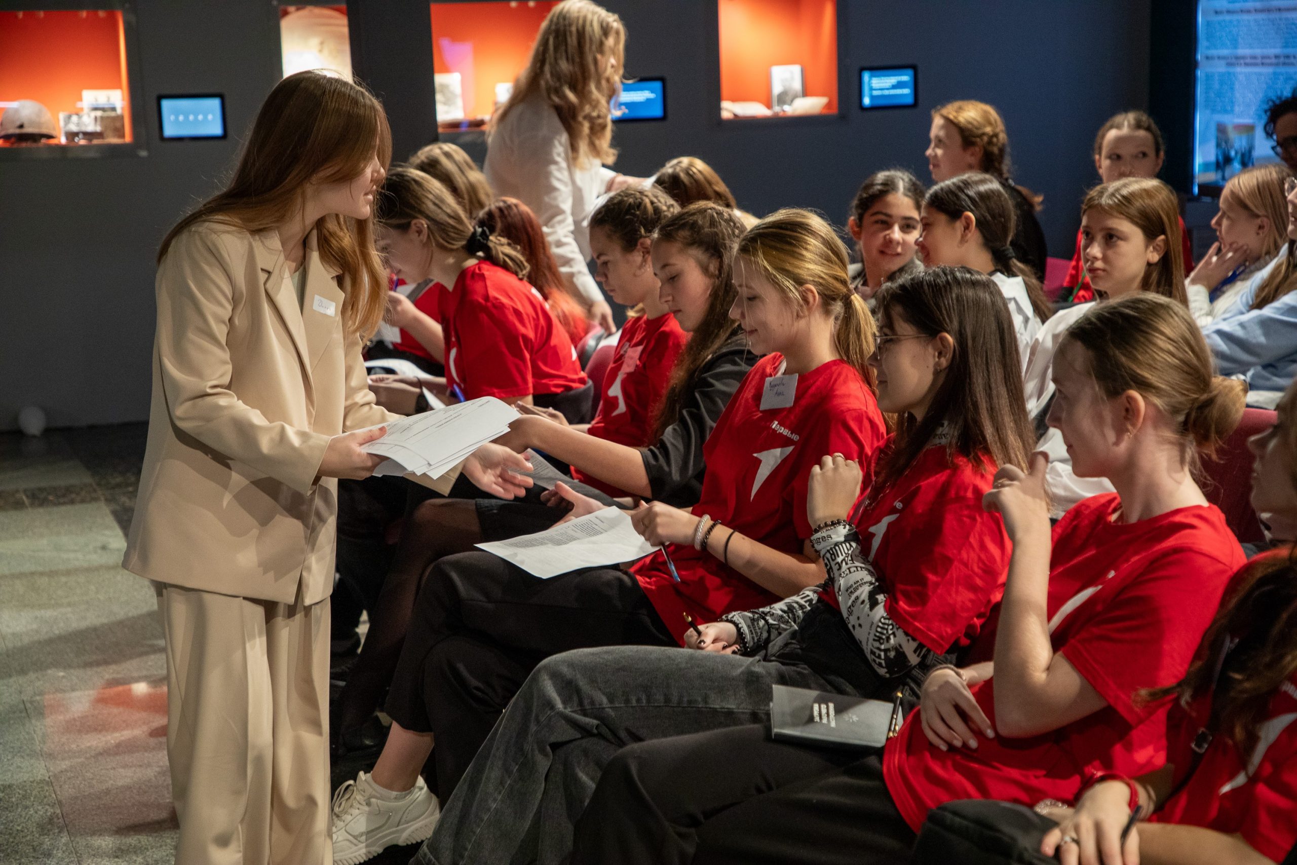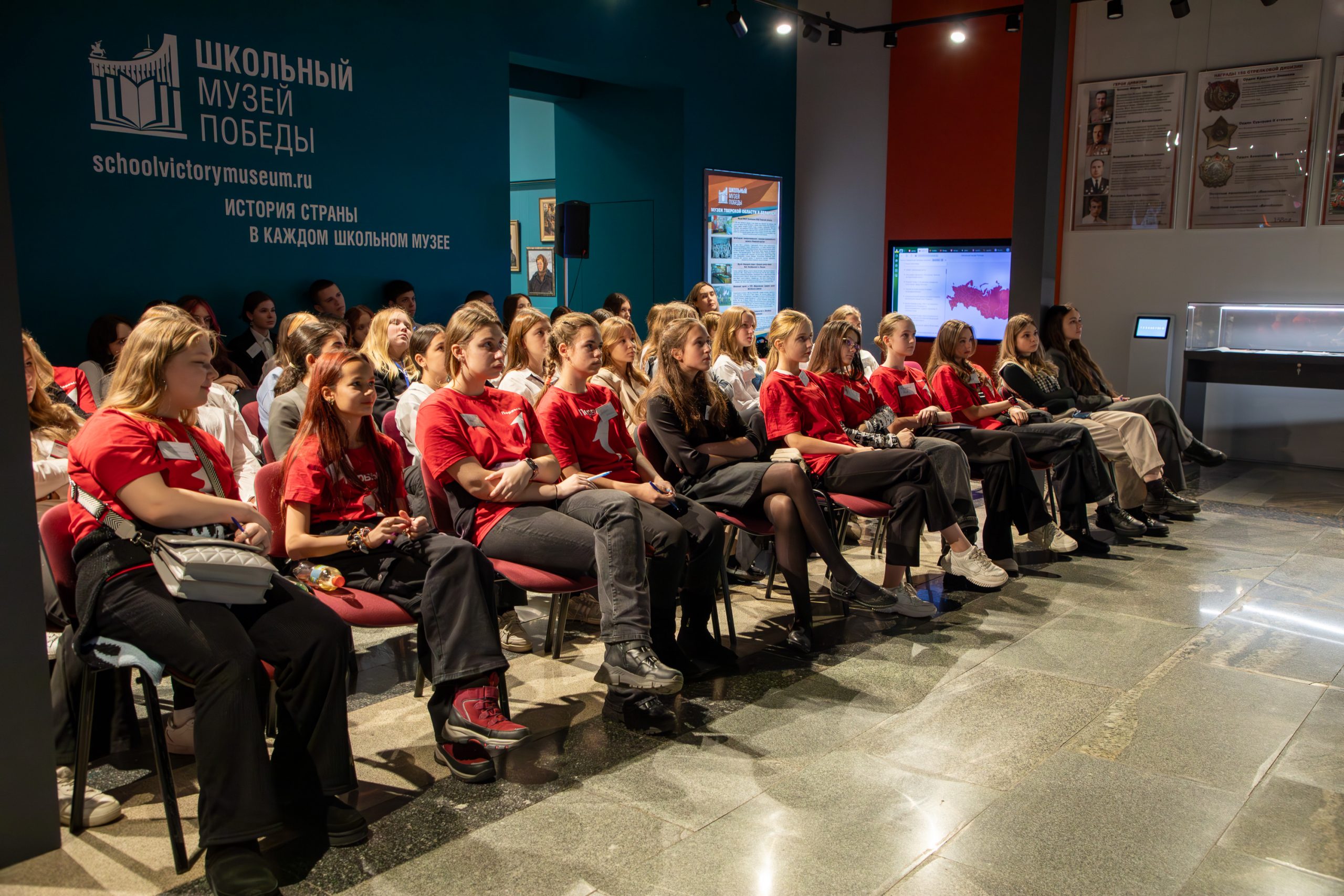 Патриотический урок «Подвиг народа в памяти народа» прошел в «Школьном музее Победы» на площадке выставки «Подвиг великий и вечный», подготовленной школьными музеями Тверской области, Москвы и Белоруссии, а также поисковым объединением «Память поколений».
