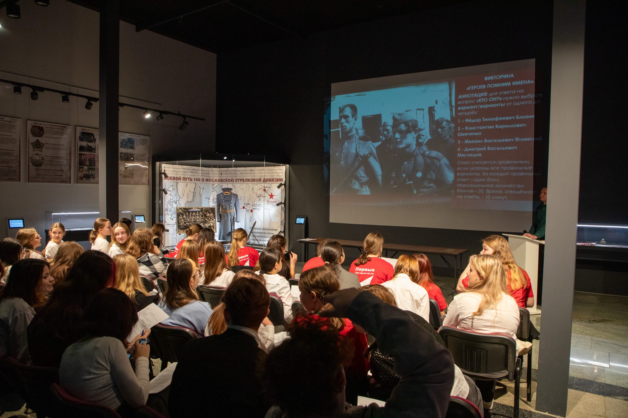 Ранее сообщалось, что в Музее Победы стартовал цикл открытых уроков в рамках выставки «Подвиг великий и вечный», посвященной истории боевого пути 158-й стрелковой Лиозненско-Витебской дважды Краснознаменной ордена Суворова дивизии. Всего для школьников и гостей музея пройдет 14 тематических встреч.