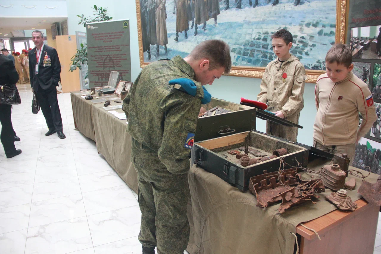 В рамках форума работала тематическая экспозиция, на которой поисковики представили артефакты Великой Отечественной войны, обнаруженные в ходе поисковых экспедиций на месте ожесточенных боев в Московской, Тверской и Волгоградской областях.