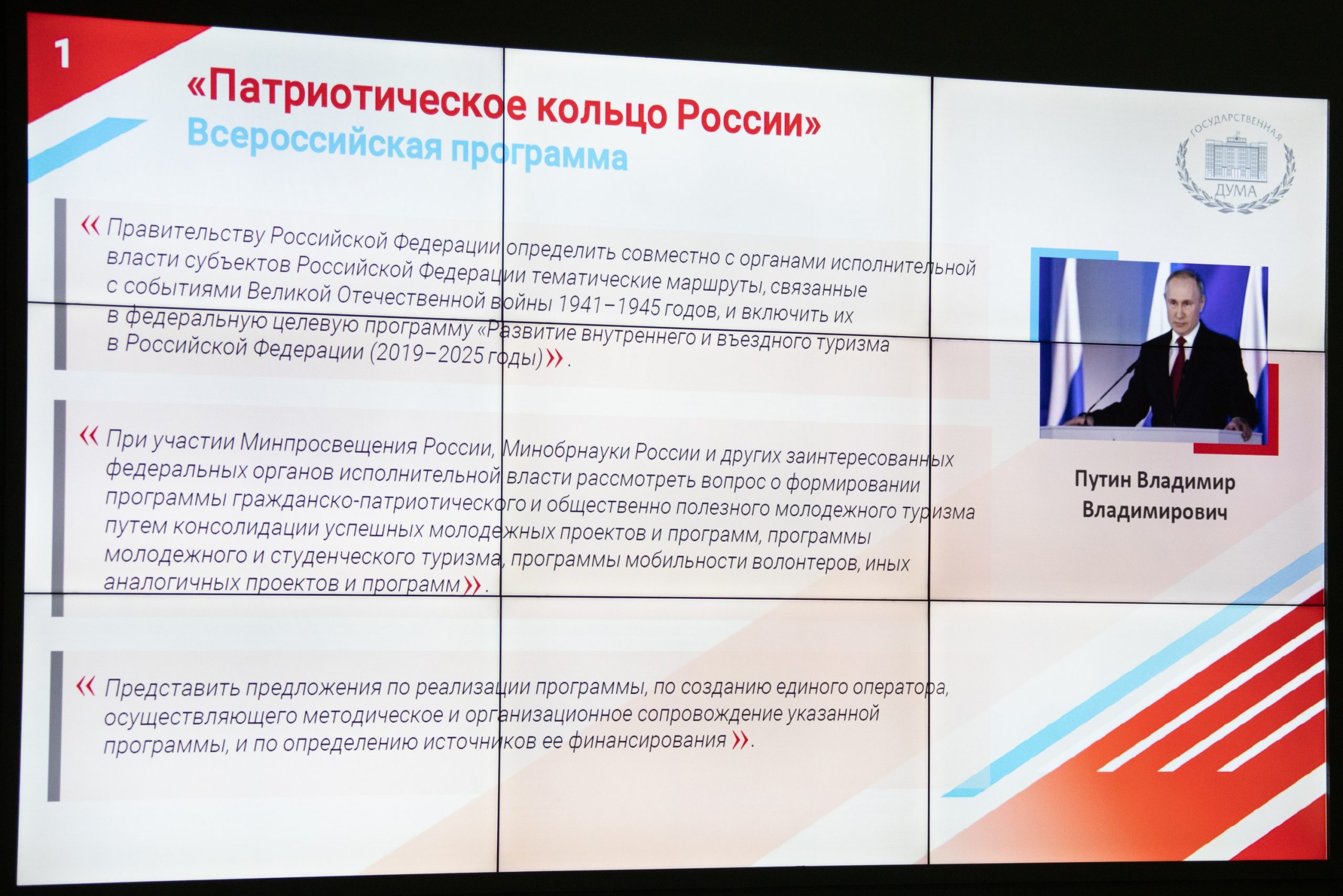 В Музее Победы состоялся круглый стол «Развитие федеральных и региональных патриотических маршрутов и реализация концепции Всероссийского патриотического проекта «Патриотическое кольцо России». Встречу организовал комитет Государственной думы по туризму и развитию туристической инфраструктуры.