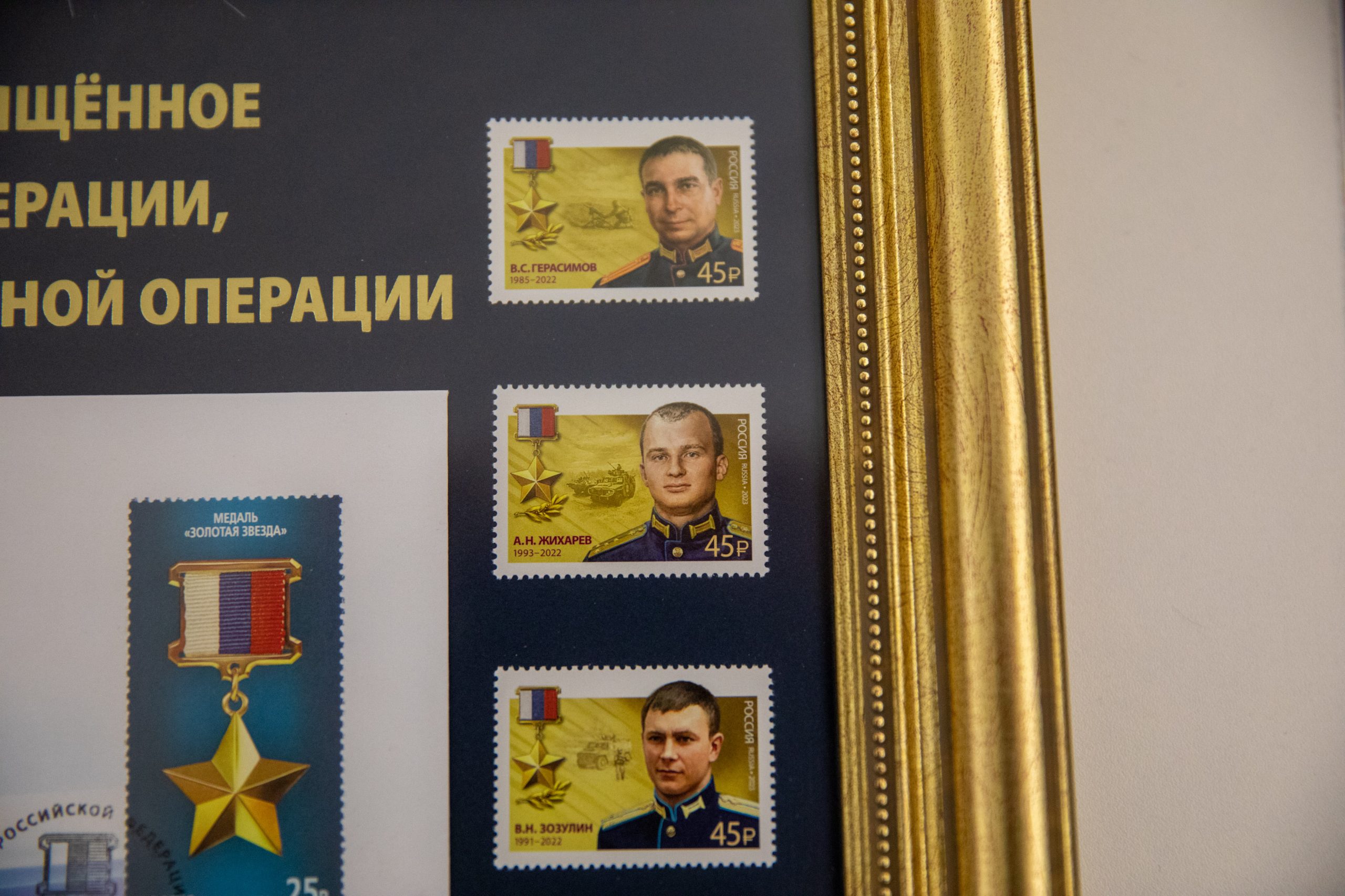 К церемонии был изготовлен специальный сувенирный штемпель, на котором указана дата: «9 декабря 2023 год«. В этот день 10 почтовых марок серии «Герои Российской Федерации» с портретами и информацией об их подвигах поступили в почтовое обращение. Их можно будет пробрести в почтовых отделениях.