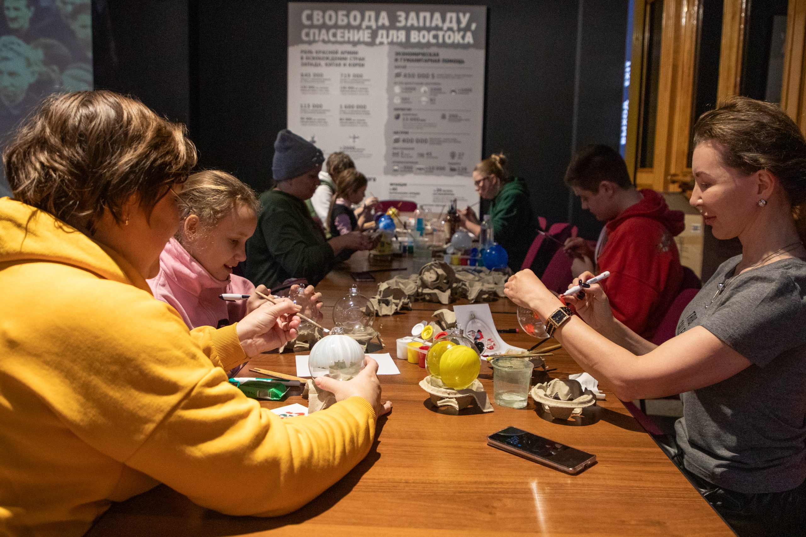 В Музее Победы состоялся мастер-класс по росписи елочных игрушек. В занятии приняли участие все желающие посетители. Украшения будут переданы в медико-социальное учреждение для детей.