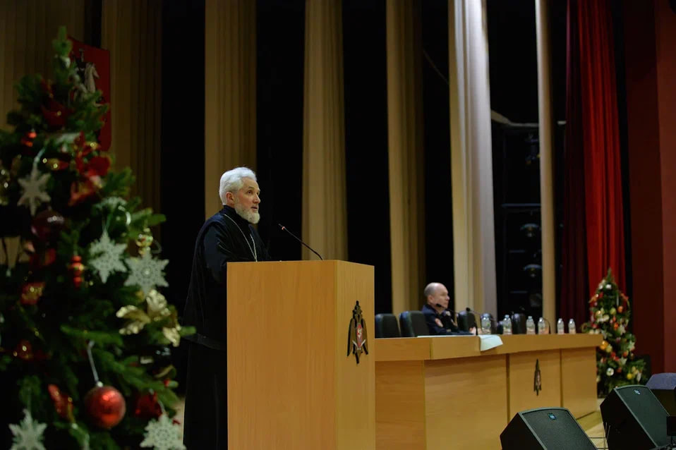 Среди приглашенных гостей присутствовали председатель совета ветеранов столичного главка полковник милиции в отставке Владимир Комаров и настоятель храма святого великого князя Дмитрия Донского при ОМОН «Авангард» Росгвардии по г. Москве отец Владимир.
