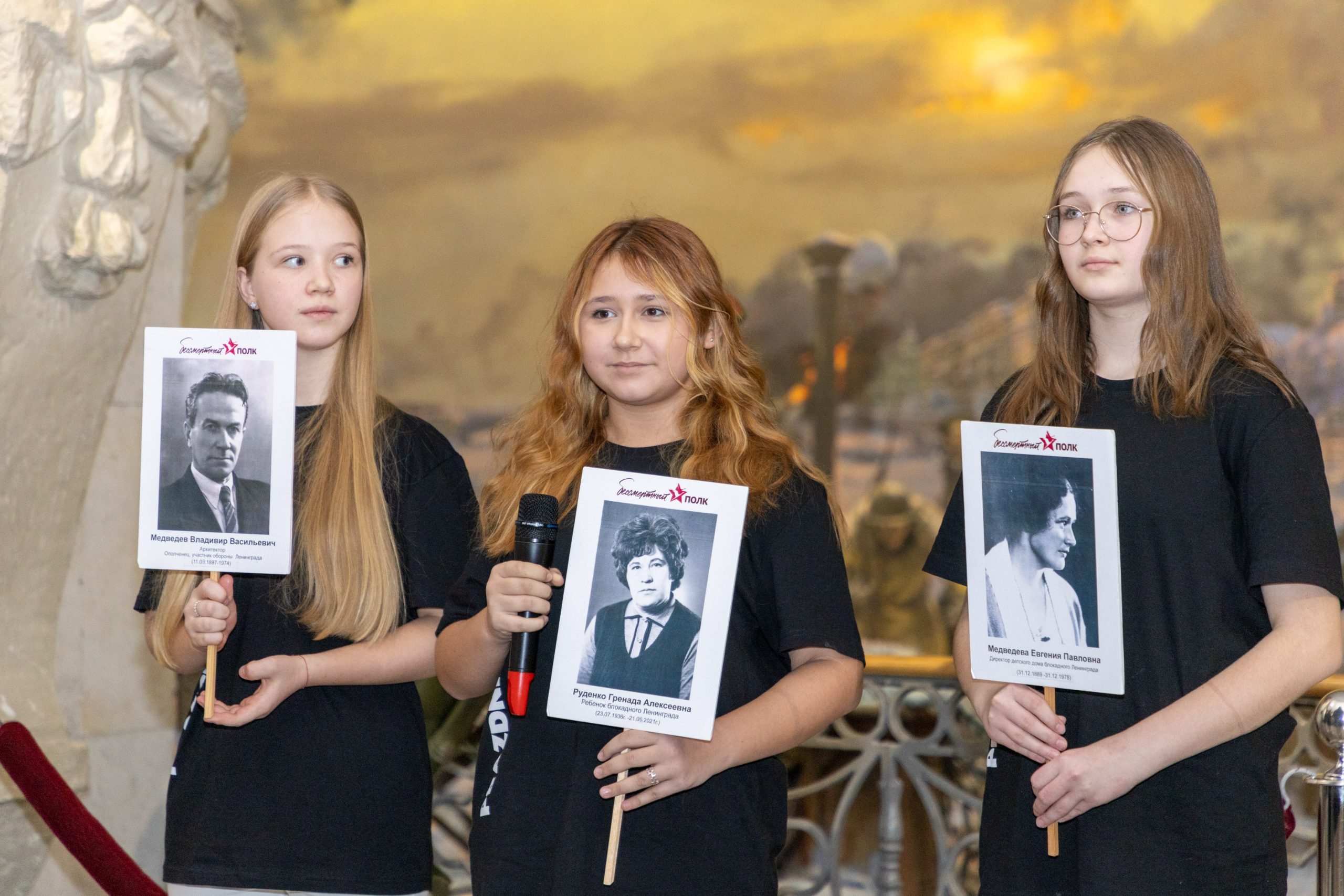 В диораме «Блокада Ленинграда» Музея Победы открылся цикл мероприятий, приуроченных к 80-летию полного освобождения Ленинграда от нацистской блокады в 1944 году. В рамках акции «Ромашка Победы. Семейная история войны» участники ведущего коллектива «Арт-студия «Праздник» из Санкт-Петербурга поделились историями и биографиями своих героических родственников — прабабушек и прадедов.