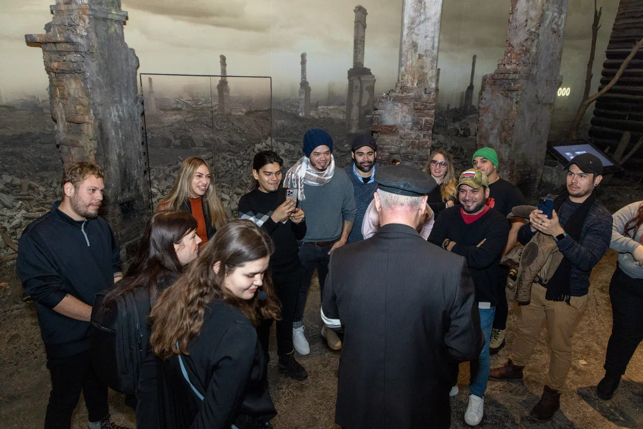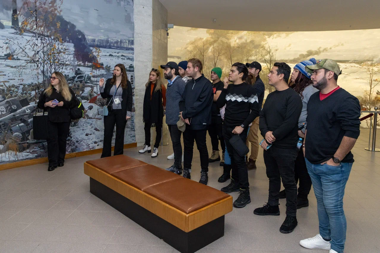 Кроме того, гости из Никарагуа побывали на экскурсии по уникальной иммерсивной экспозиции «Подвиг Народа». Экскурсовод рассказала иностранным гостям о вкладе в Победу тружеников тыла — тысяч рядовых граждан, деятелей науки, медицины, культуры, всех тех, кто самоотверженно трудился в тяжелые годы Великой Отечественной войны.