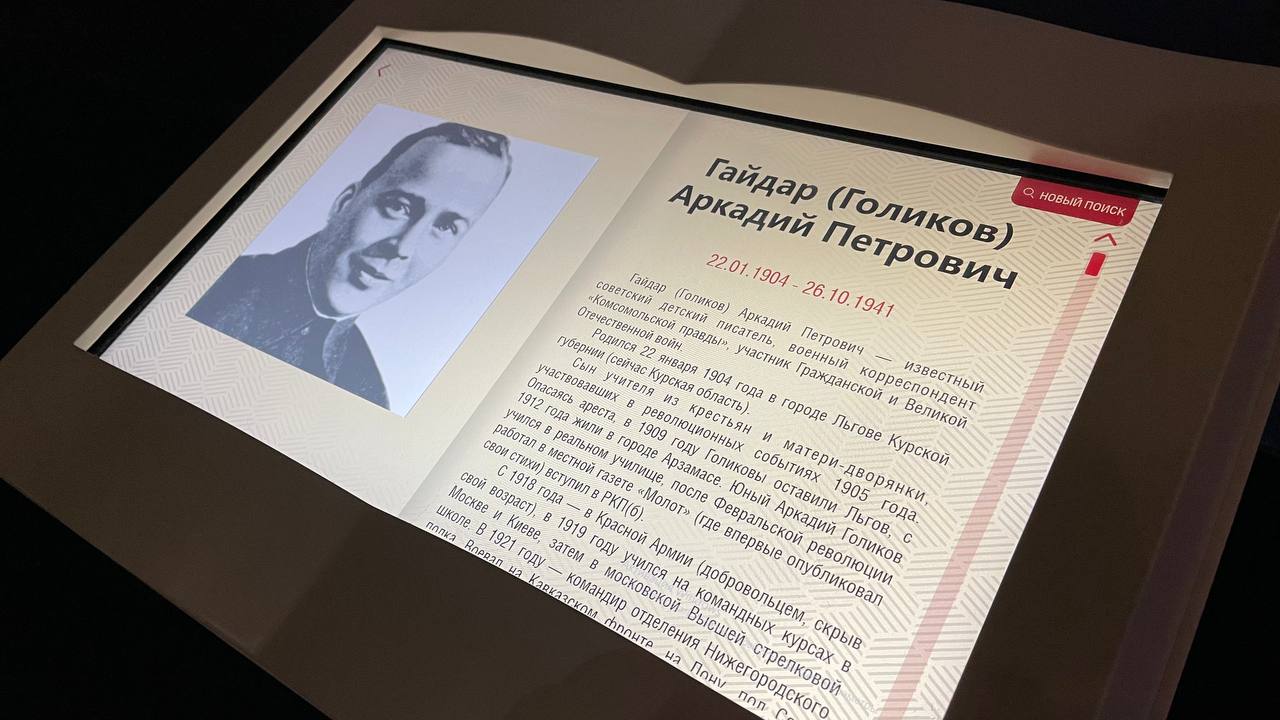 Сам Аркадий Гайдар, уже известный писатель, в июле 1941 года отправился на фронт корреспондентом газеты «Комсомольская правда», в которой публиковал свои военные очерки. Погиб в бою около деревни Леплява Каневского района Черкасской области 26 октября 1941 года. Память о нем навечно сохранена в Музее Победы. Его биография внесена во Всероссийский исторический проект «Лица Победы», и любой желающий может ознакомиться с ней в мультимедийном зале музея.