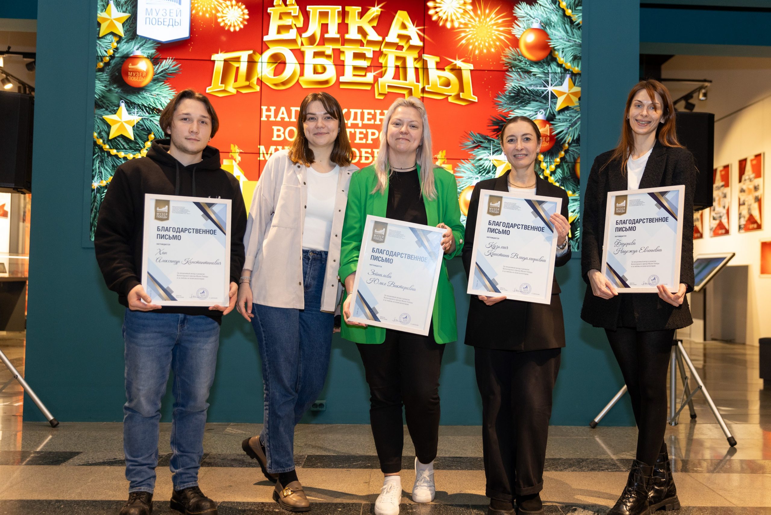 Помимо награждения волонтеров на церемонии были также вручены и благодарственные письма сотрудникам Музея Победы, помогавшим в организации и проведении квеста «Ёлка Победы. Звезда Героя».