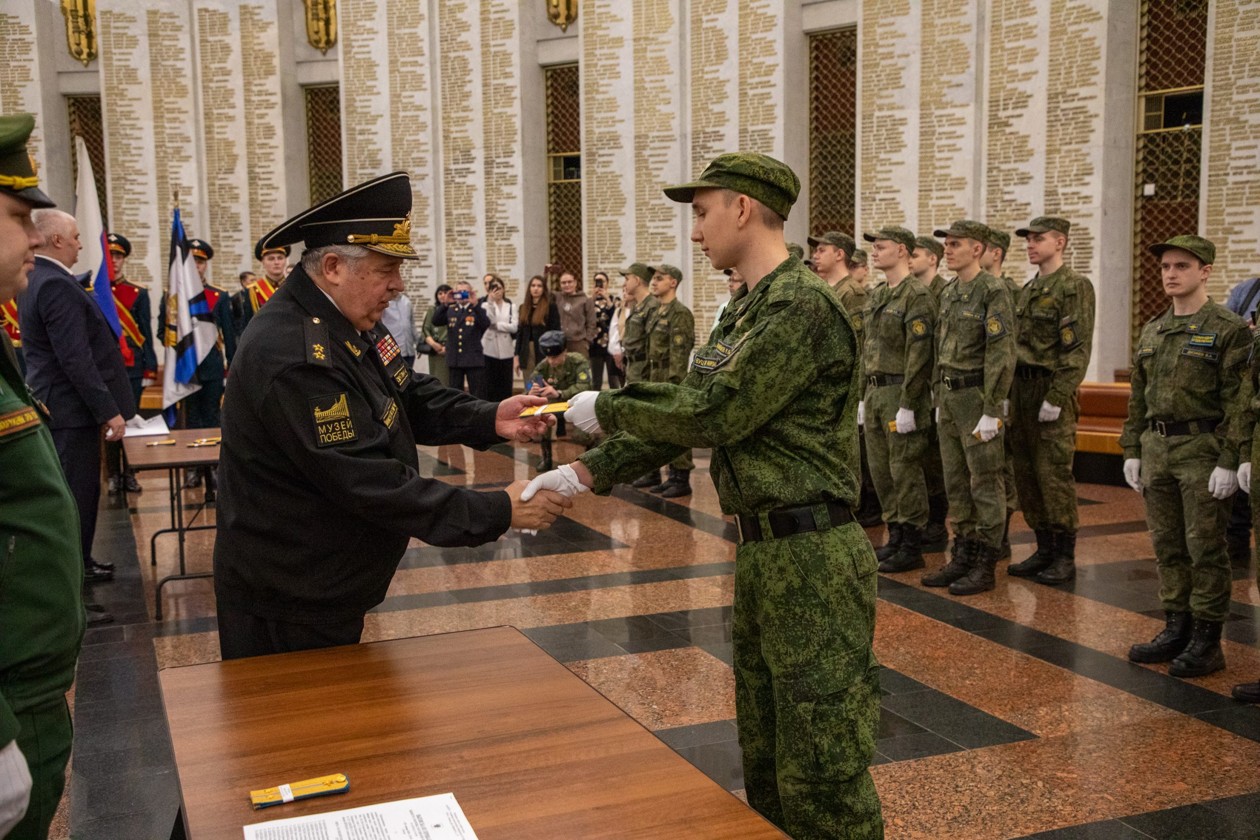 В Музее Победы выпускникам Военного учебного центра при Российском технологическом университете МИРЭА вручили офицерские погоны.