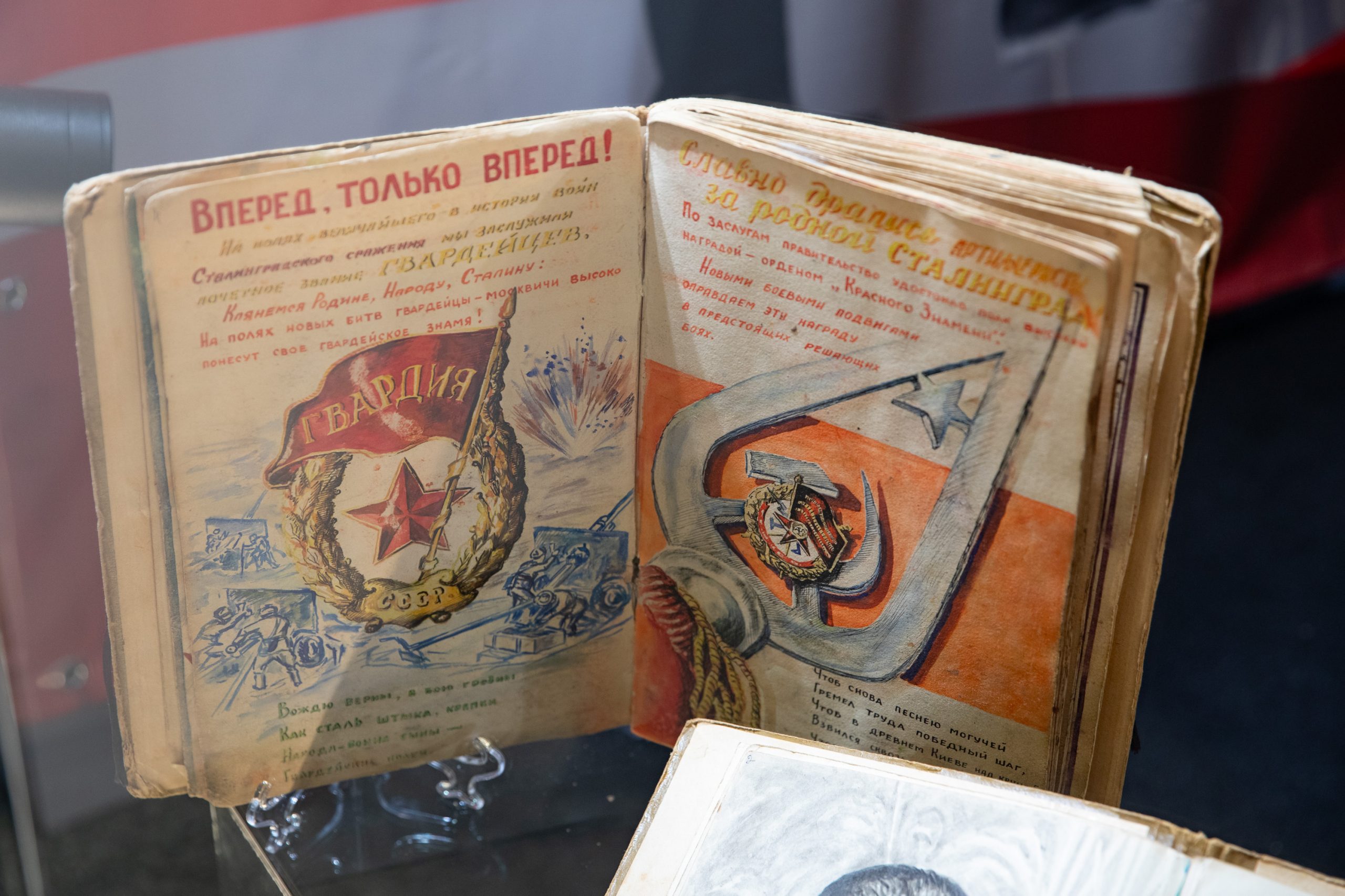 На встрече школьники познакомились с окопными журналами «Вперёд. За родной Сталинград!», «Боевой путь 173-й стрелковой дивизии 1942-1943 год». Они создавались прямо на полях сражений. В них добровольцы 21-й дивизии народного ополчения от руки писали заметки, рисовали портреты, делали иллюстрации для каждой статьи. В журналах рассказывается о подвигах на полях сражений, о том, как проводились комсомольские собрания, выпускались боевые листки.