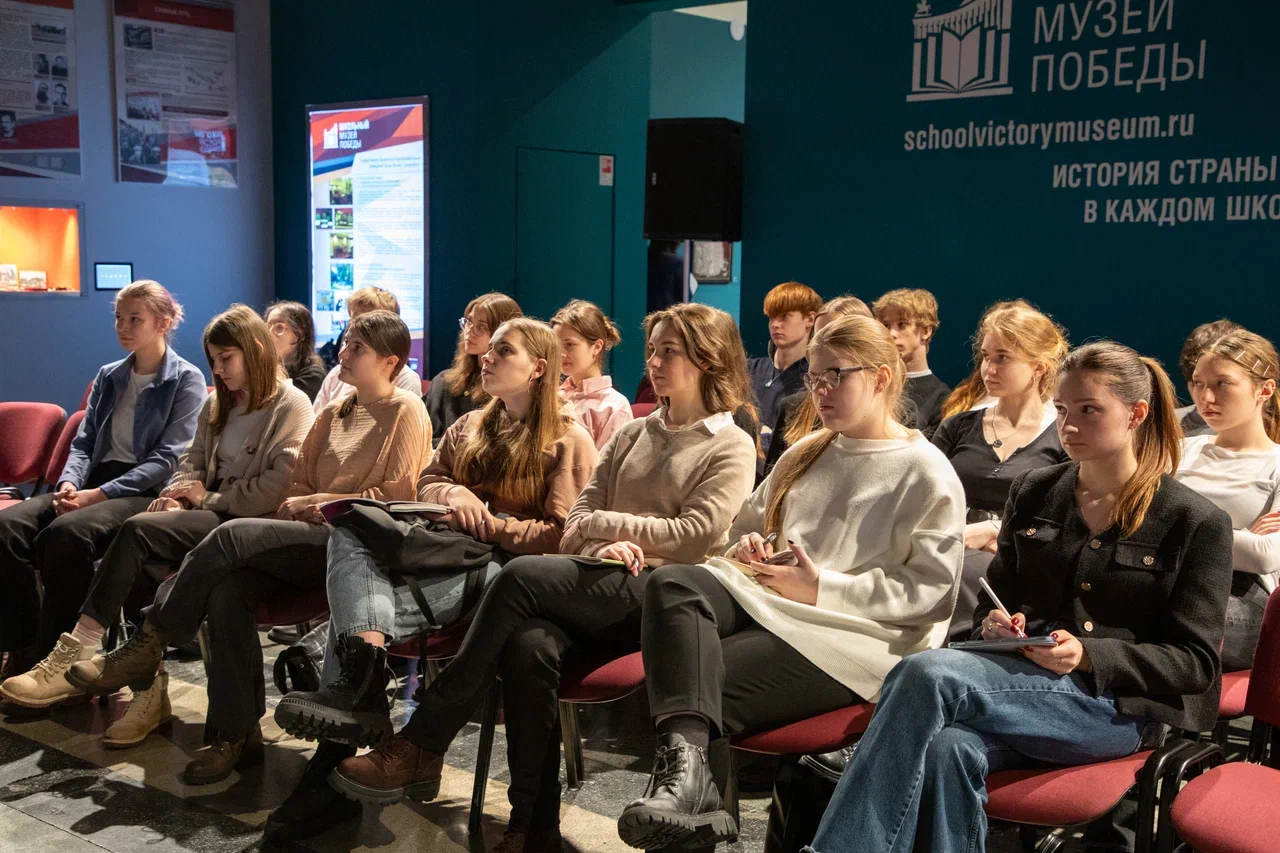 В Музее Победы на площадке совместной выставки школьных музеев Москвы и Волгограда «Памяти героев Сталинграда» прошел урок истории «Вперед, за родной Сталинград».