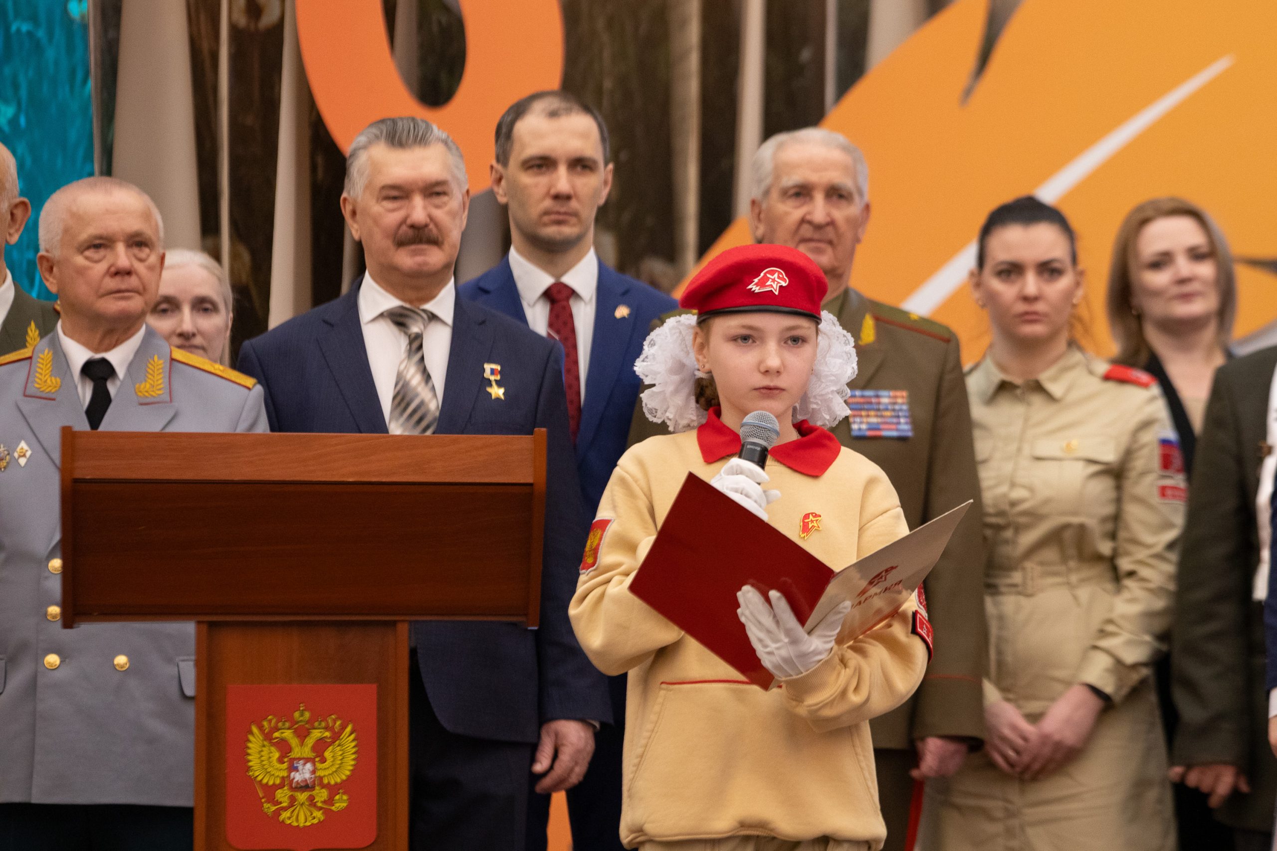 В Музее Победы в преддверии Дня защитника Отечества состоялась торжественная церемония посвящения — в ряды военно-патриотического движения «Юнармия» вступили около 600 новых участников. Всего в церемонии приняли участие порядка 800 человек. Среди гостей были не только близкие и родственники юнармейцев, но и почетные гости и участники специальной военной операции.