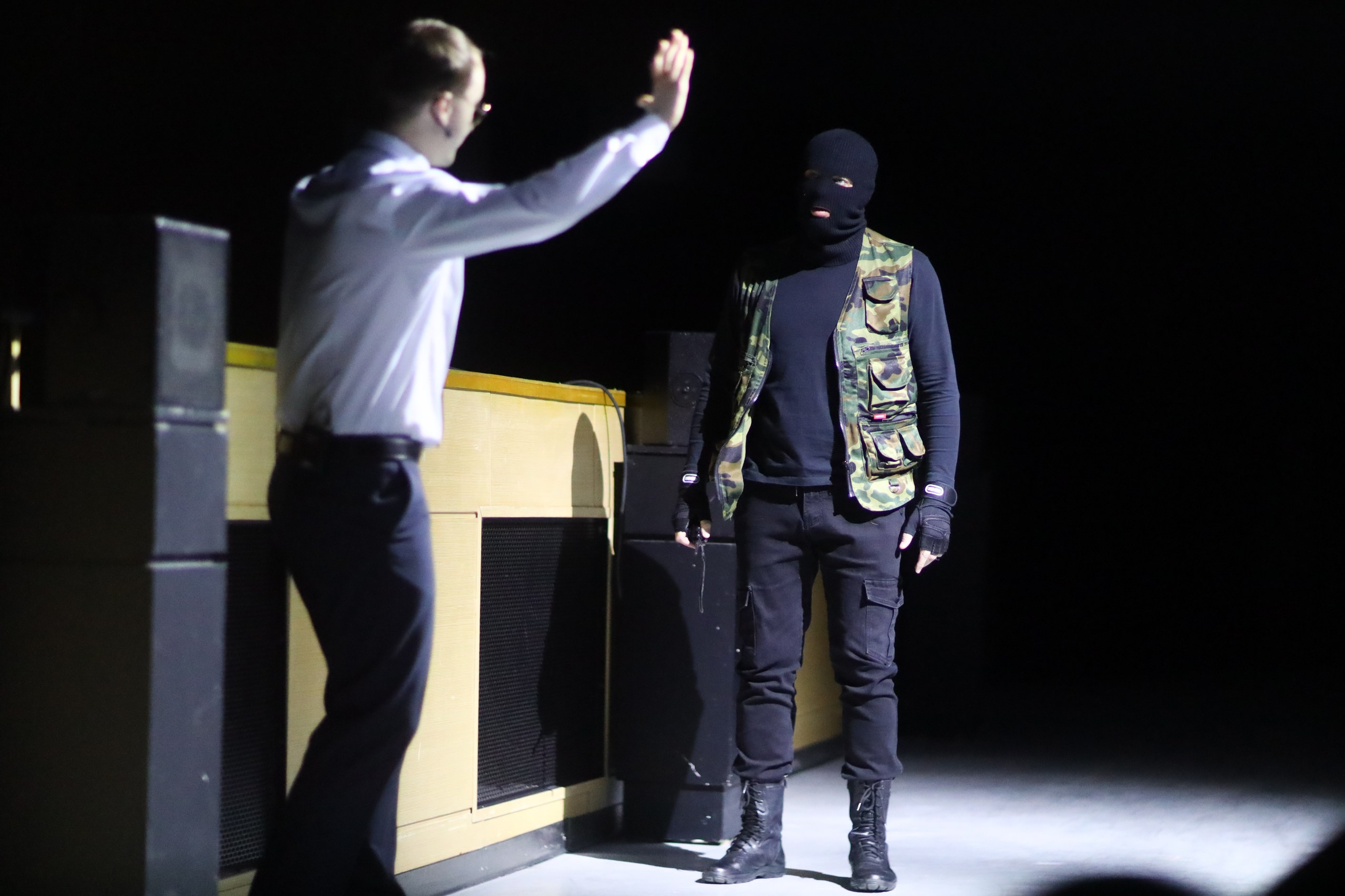 «Люди А на службе Отечеству» — это не стандартная театральная постановка. На протяжении почти двух часов зритель погружается в атмосферу офицерского братства. В рамках показа автор романа также поделился со зрителями историями из жизни специального подразделения «Альфа», про которое многое знает. Алексей Филатов — в прошлом пулеметчик и сотрудник подразделения, участвовал в операции по освобождению заложников в больнице в Буденновске.
