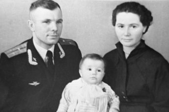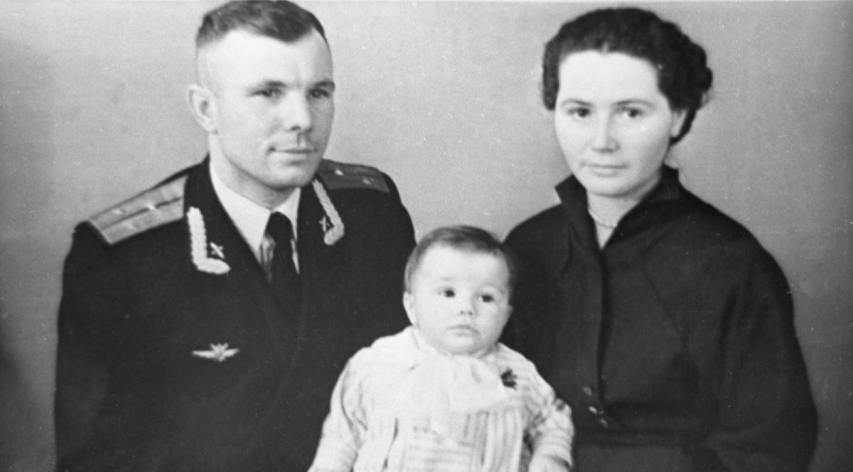 - Летчик-испытатель ВВС, старший лейтенант Юрий Гагарин с женой Валентиной и дочерью Еленой. Фото: РИА Новости