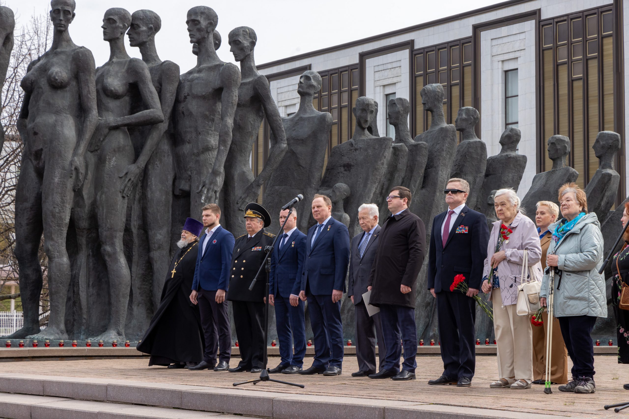 Участники акции почтили память жертв и воинов, отдавших жизнь за освобождение мира от нацизма минутой молчания. Также в рамках памятного мероприятия прозвучал «Бухенвальдский набат» и состоялось возложение венков и цветов к монументу «Трагедия народов».