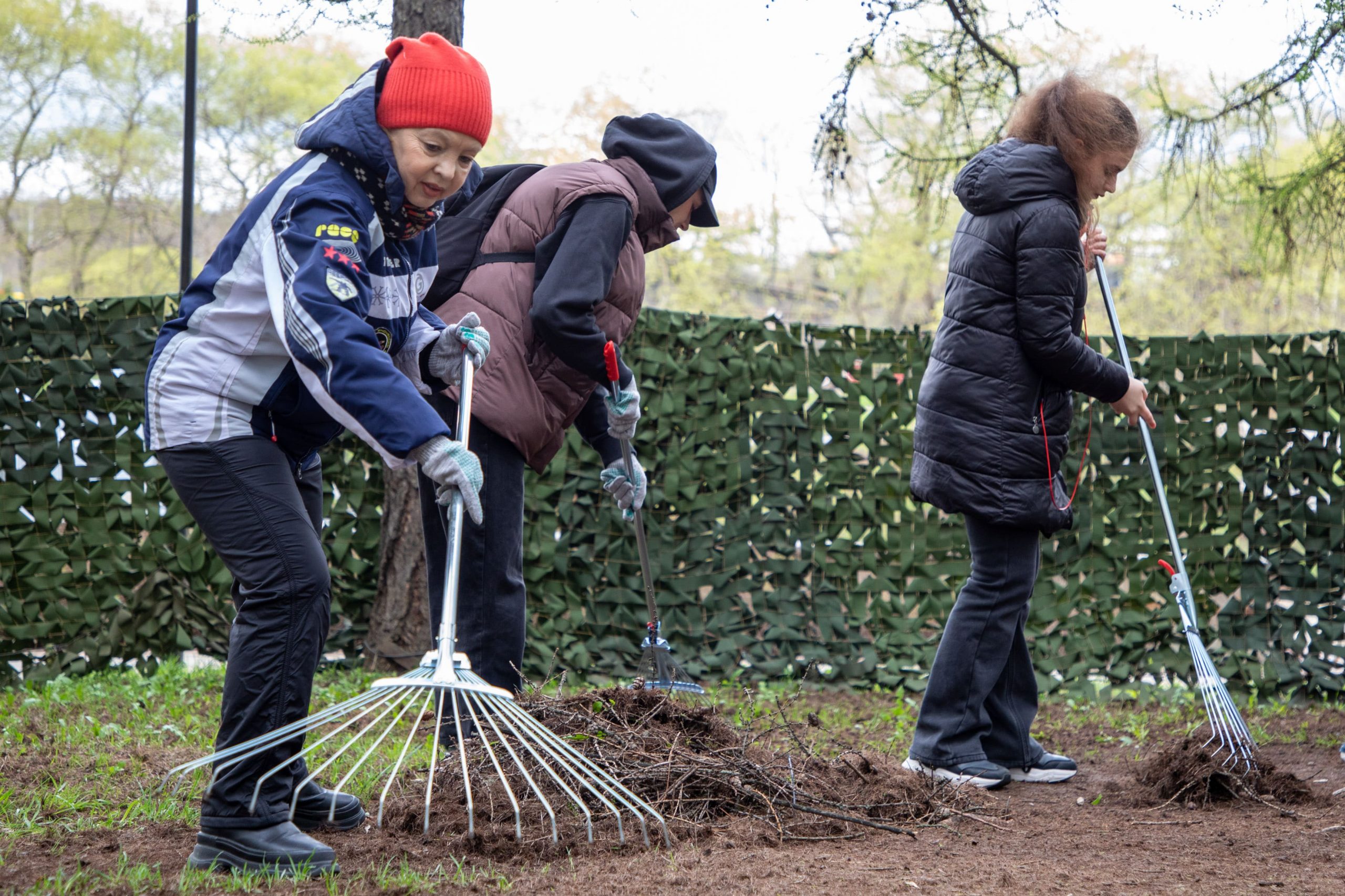 Ранее участники Волонтерского центра, а также сотрудники Музея Победы присоединились к городскому субботнику. Они убрали территорию возле главного здания и административных корпусов культурной площадки.