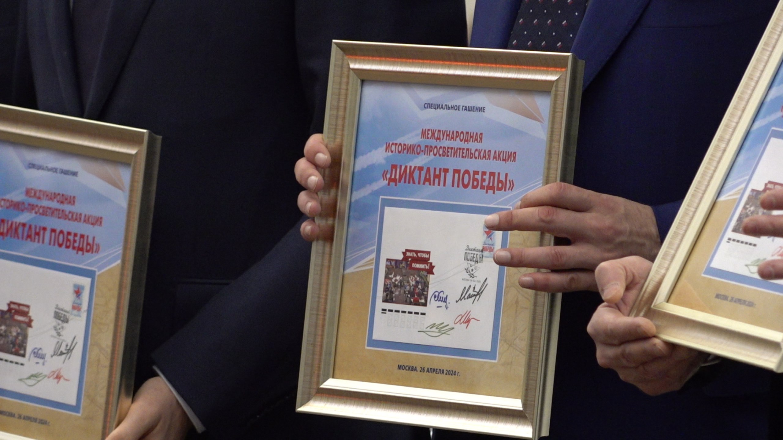 Церемония памятного гашения почтовой марки, посвященной Международной историко-просветительской акции «Диктант Победы», состоялась в Музее Победы перед началом масштабного тестирования на знание истории Великой Отечественной войны.
