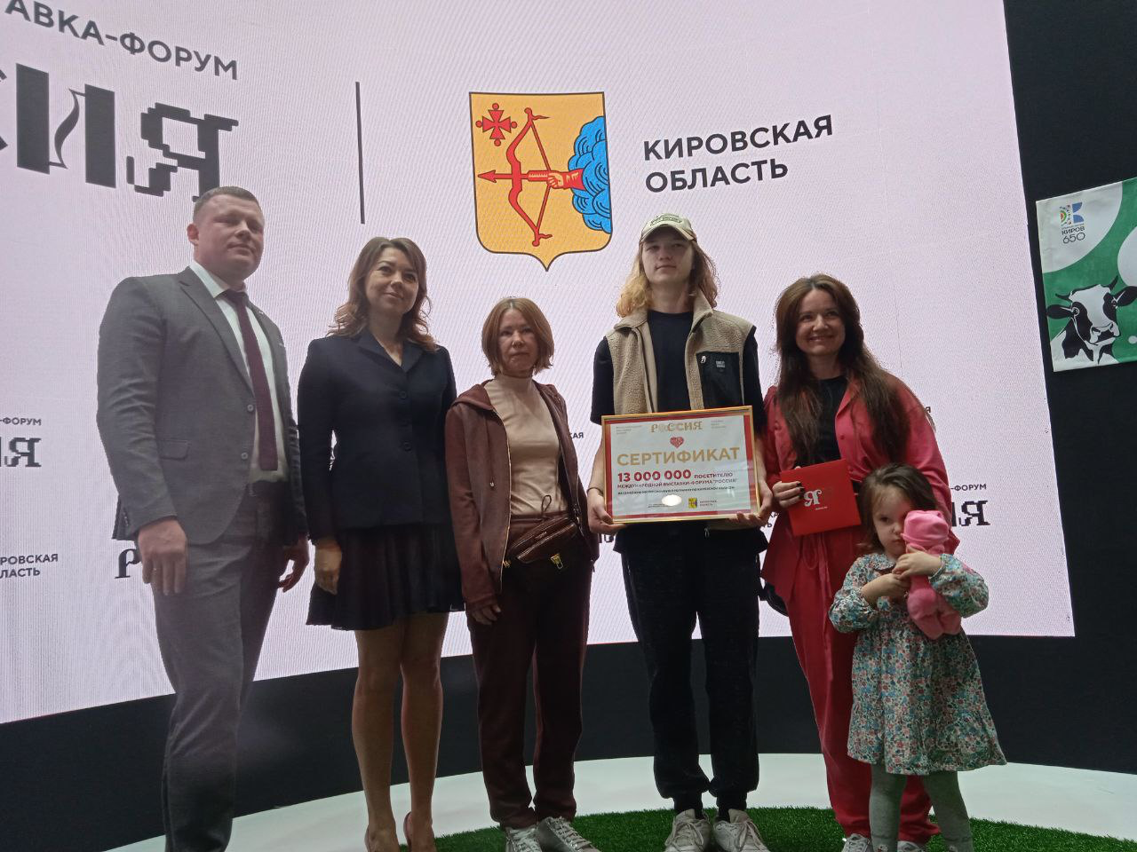 13-миллионному посетителю Международной выставки-форума «Россия» на ВДНХ подарили тур по Кировской области и по городу Кирову, который в этом году отмечает свое 650-летие и готовит большую праздничную программу.