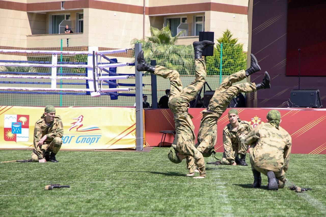 В рамках «Кубка Победы» глава ведомства вместе с губернатором Краснодарского края вручили призы воспитанникам детских секций бокса и рукопашного боя, выступивших перед зрителями с показательной программой. Генерал армии Виктор Золотов поблагодарил юных спортсменов и напутствовал их на продолжение тренировок и стремление к будущим победам.