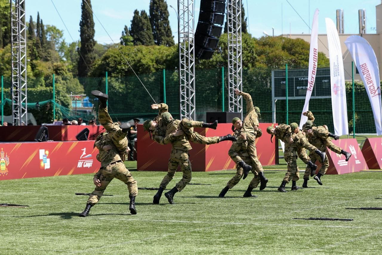 В Федеральном центре единоборств «Юг Спорт» и на сцене сочинского Зимнего театра перед жителями и гостями курортного города выступил Академический ордена «За заслуги в культуре и искусстве» ансамбль песни и пляски войск национальной гвардии Российской Федерации. Под управлением начальника, художественного руководителя и главного дирижера, народного артиста России, генерал-майора Виктора Елисеева творческий коллектив исполнил патриотические песни советских авторов, известные зрителям и любимые ими популярные произведения.