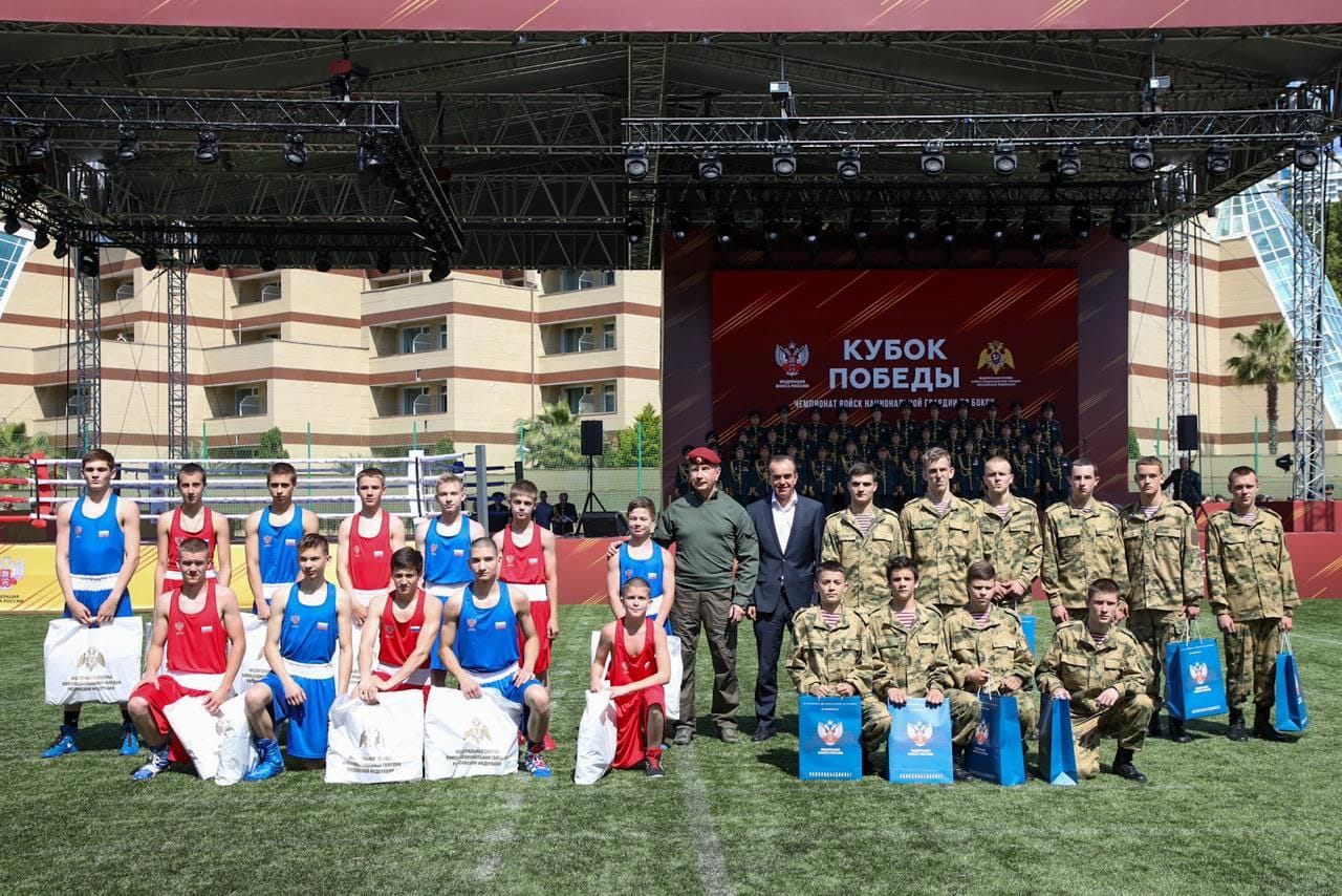 Победителям и призерам «Кубка Победы» главнокомандующий вручил пояса, медали и кубки. В награждении также приняли участие губернатор Краснодарского края Вениамин Кондратьев, заместитель Министра спорта России Алексей Морозов, генеральный секретарь Федерации бокса России Татьяна Кириенко. Лучшие из лучших представят федеральную службу на межведомственных соревнованиях.