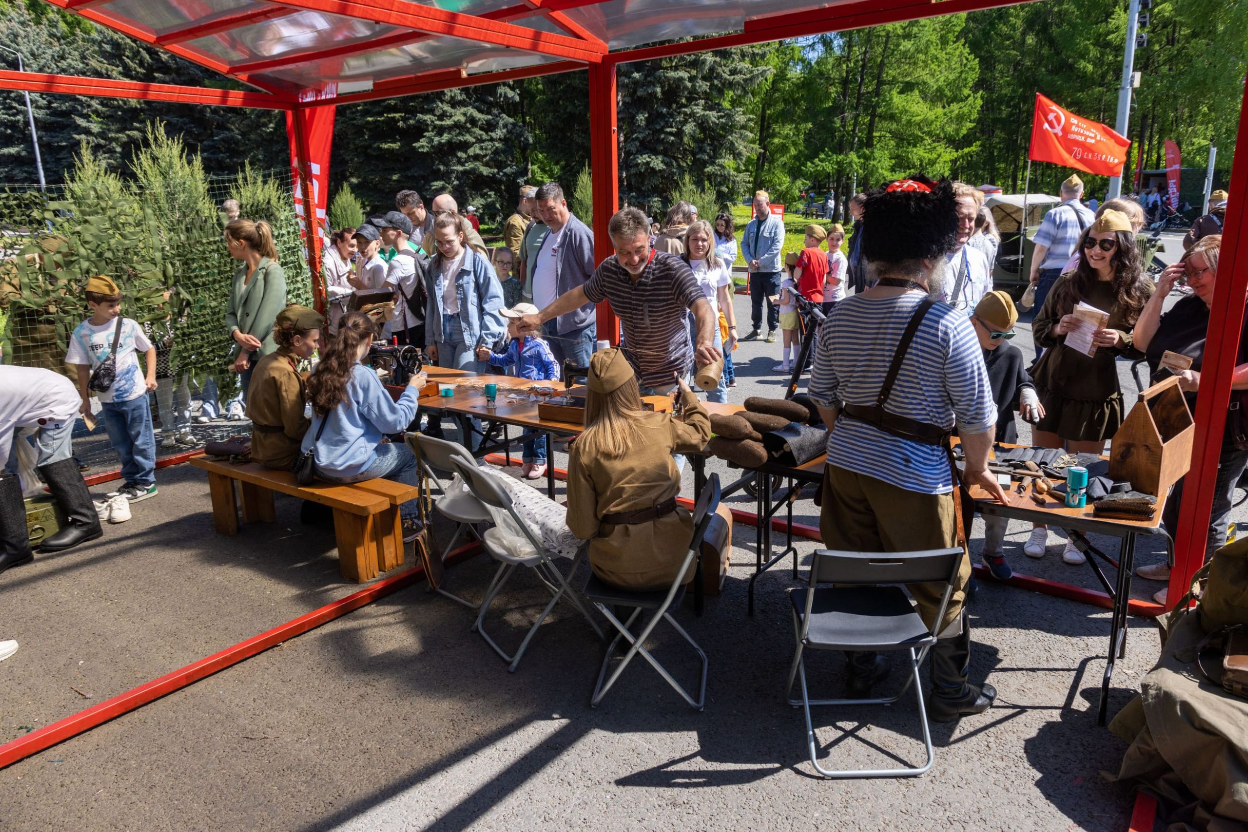 Каждые выходные посетителей мемориального комплекса на Поклонной горе ждут более 60 тематических интерактивных площадок, на которых реконструкторы воссоздают атмосферу 1940-х годов, бесплатные экскурсии и мастер-классы, спортивные соревнования и творческие состязания, выставки оружия и спецтехники, концерты и показательные выступления, призы и подарки за прохождение увлекательного квеста.