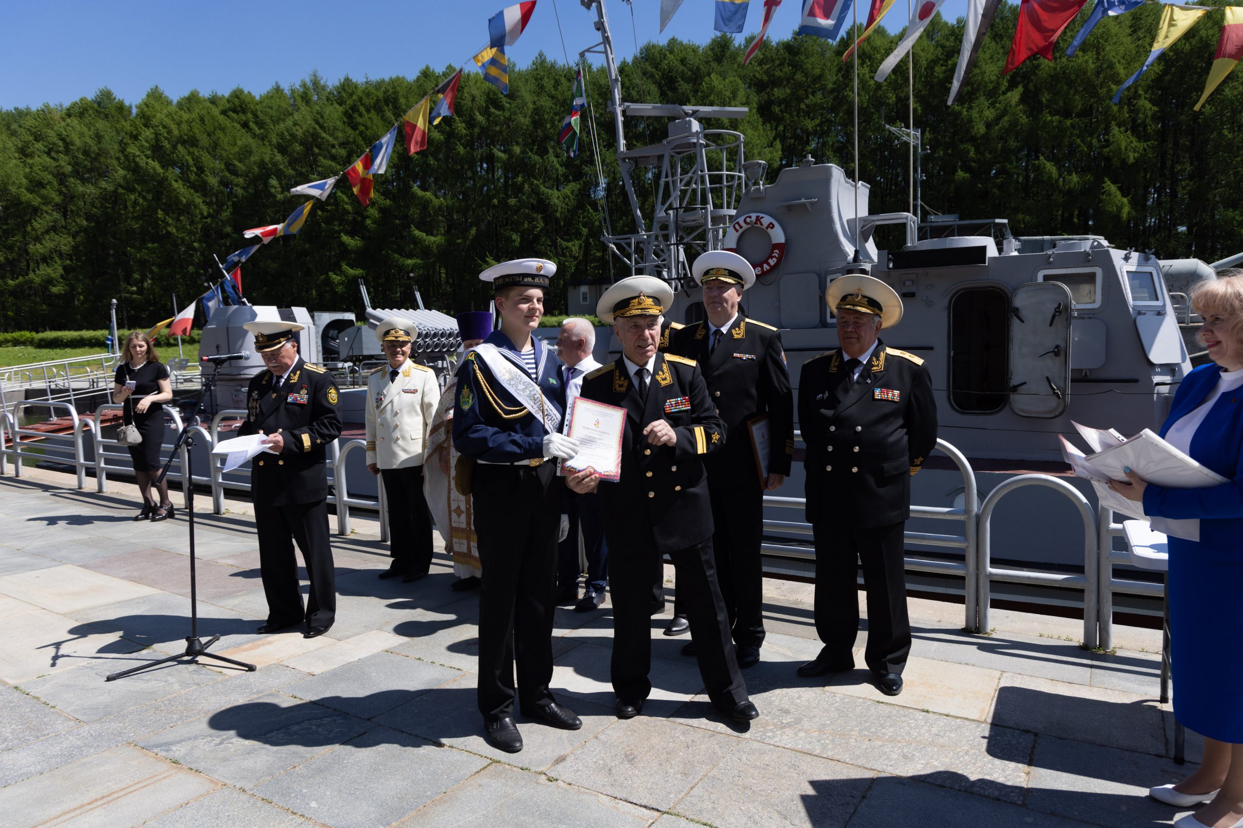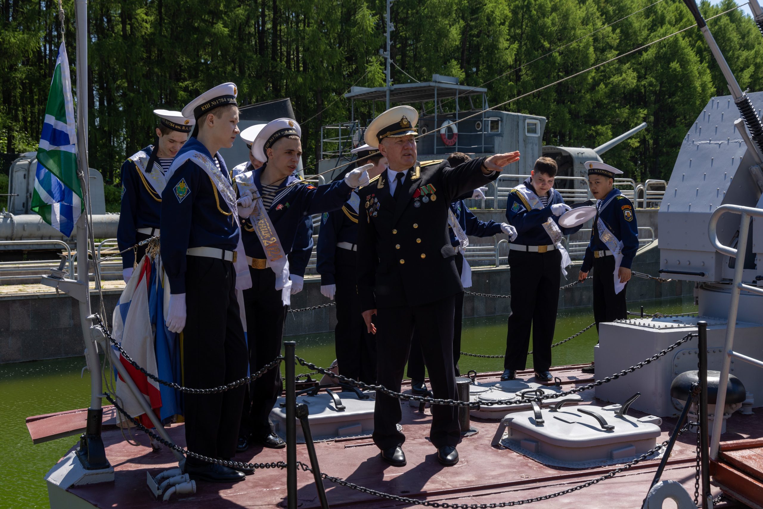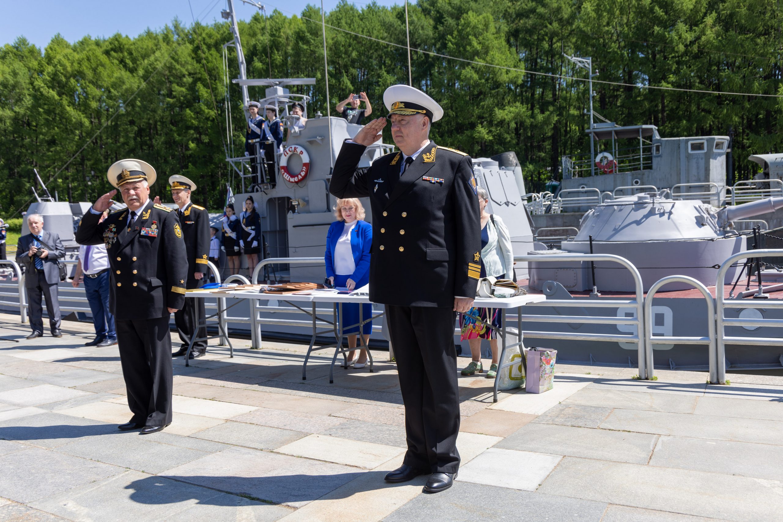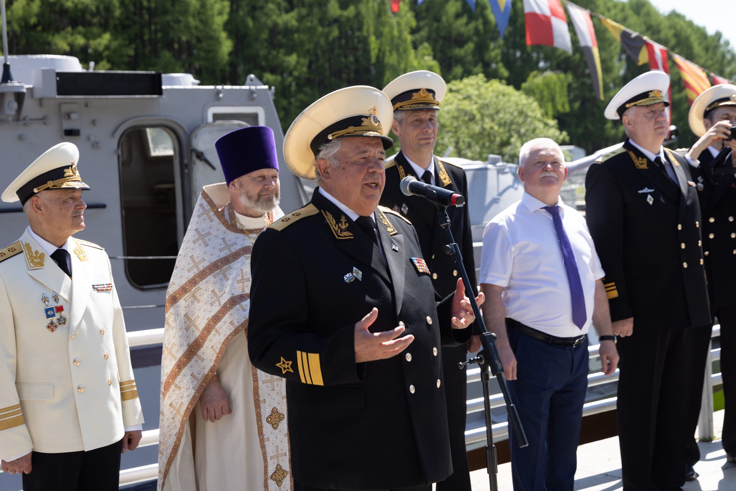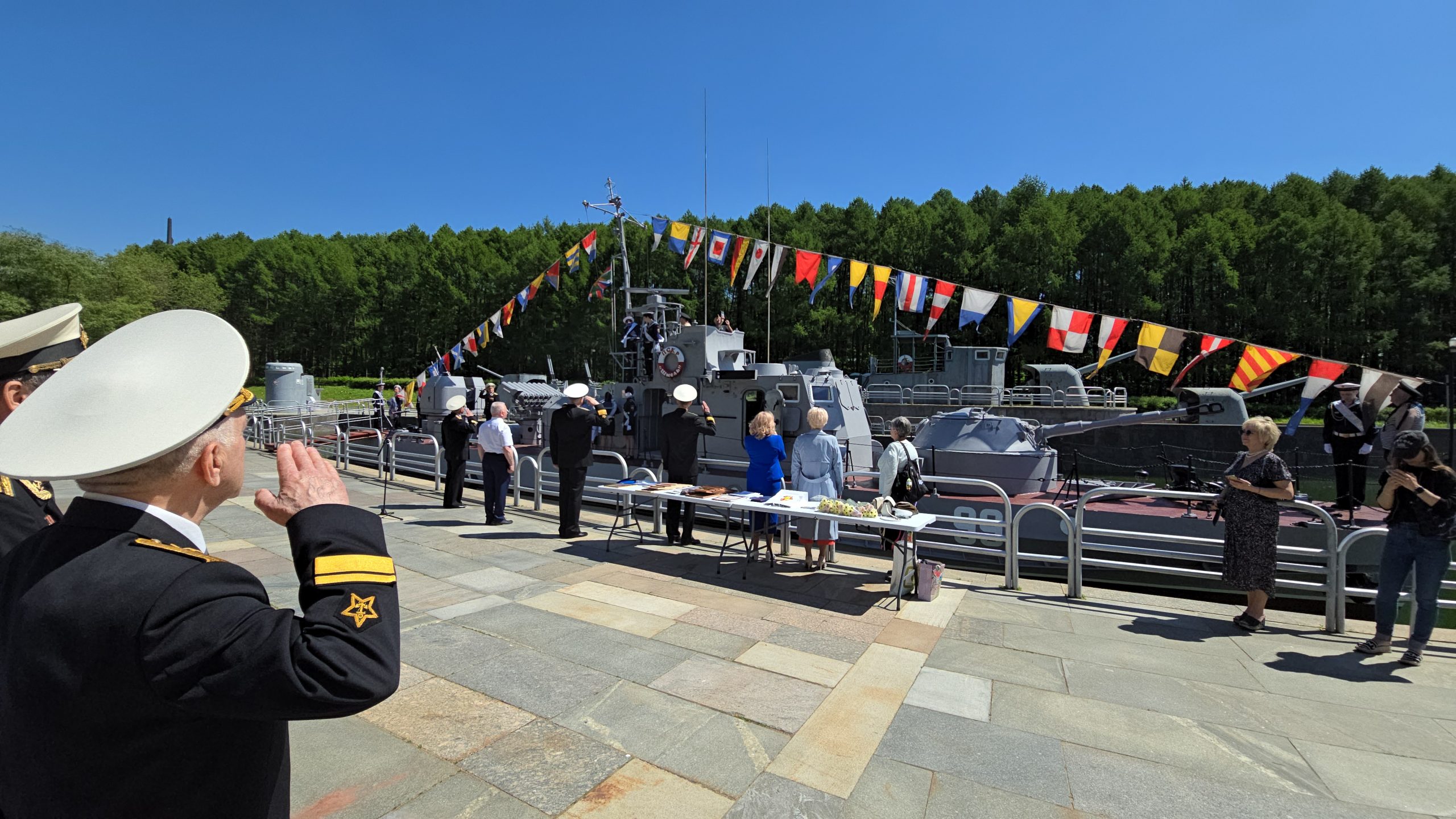Торжественное мероприятие состоялось на площадке военно-морской техники, около обновленного речного артиллерийского катера «Шмель».