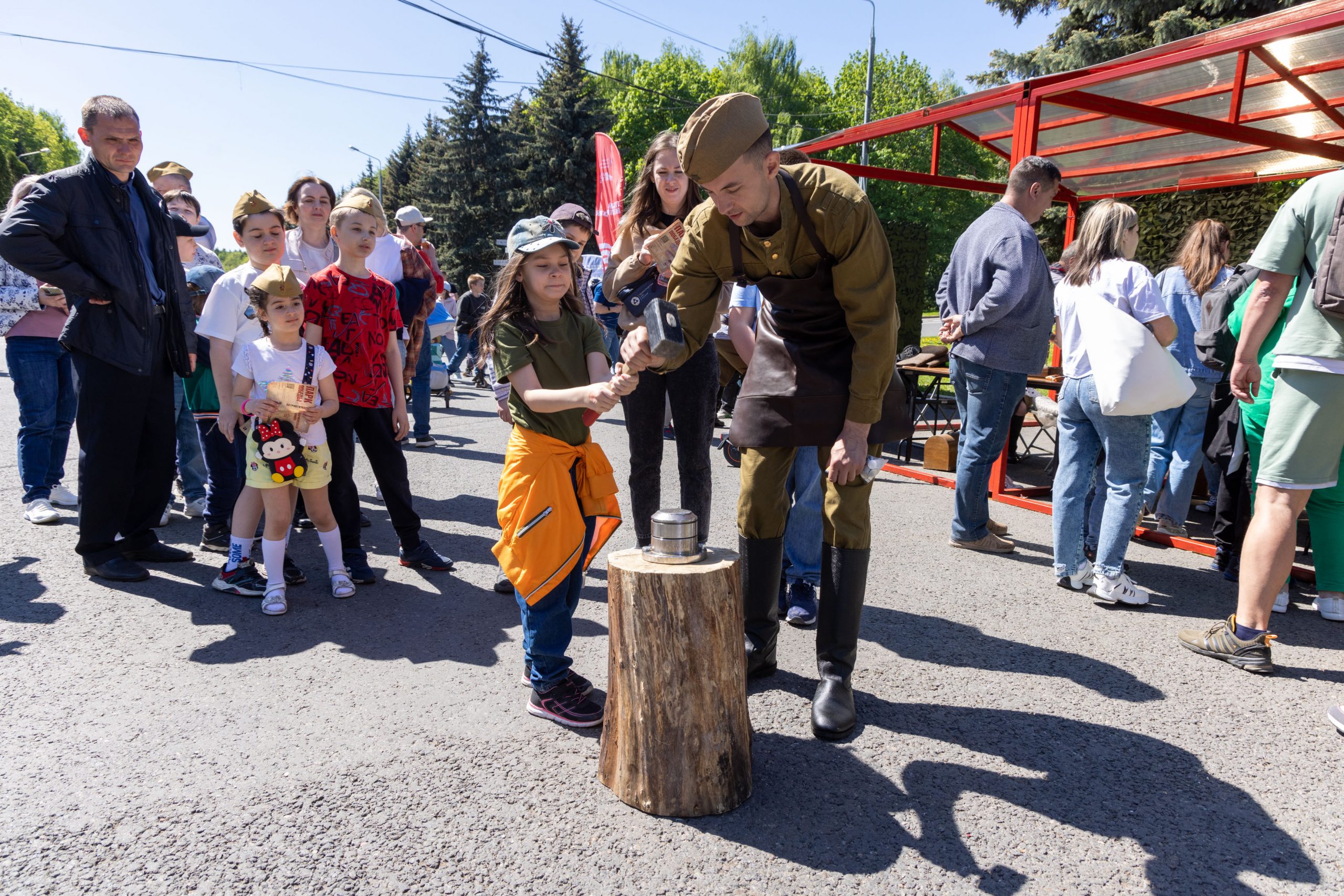 В локации «Живая история» ребятам покажут, как писали фронтовые письма и что было в солдатском вещмешке. Взяв специальную «Красноармейскую книжку», юные гости смогут не только поучаствовать в десятках мастер-классов, но и стать участниками квеста и получить призы за выполнение заданий на различных тематических локациях. Самых активных участников ждут призы — пилотки, солдатская каша, билеты в Музей Победы.