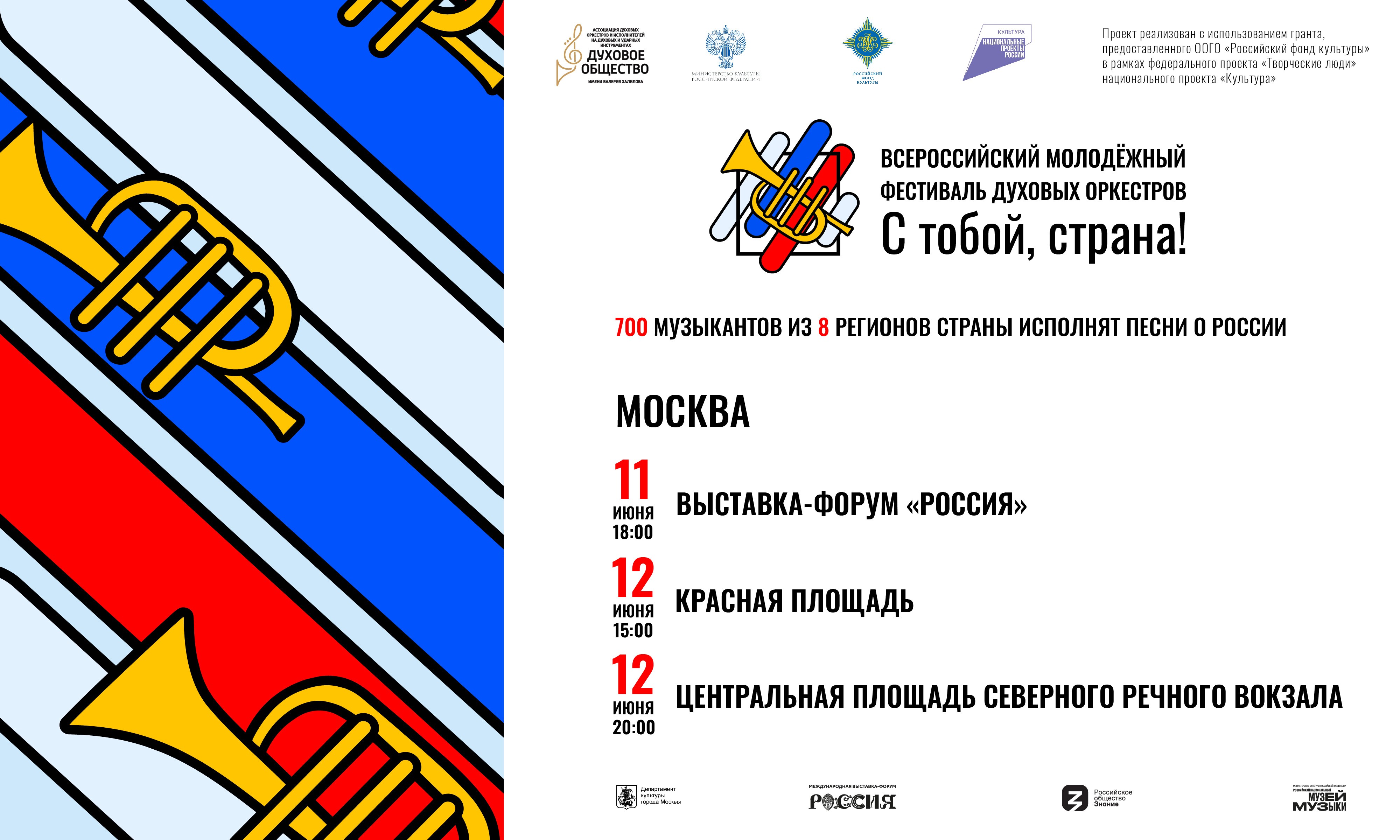 Столица отметит День России Всероссийским молодежным фестивалем духовых оркестров «С тобой, страна!». Коллективы будут выступать на городских площадках с 11 по 13 июня.