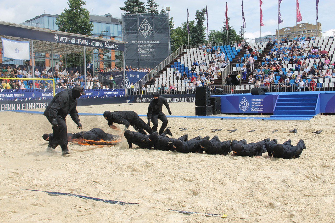Спортивный праздник прошел на территории водного стадиона «Динамо». Водолазы ОМОН «Меч» продемонстрировали зрителям десантирование с катера и штурм плавучего средства с условными преступниками.