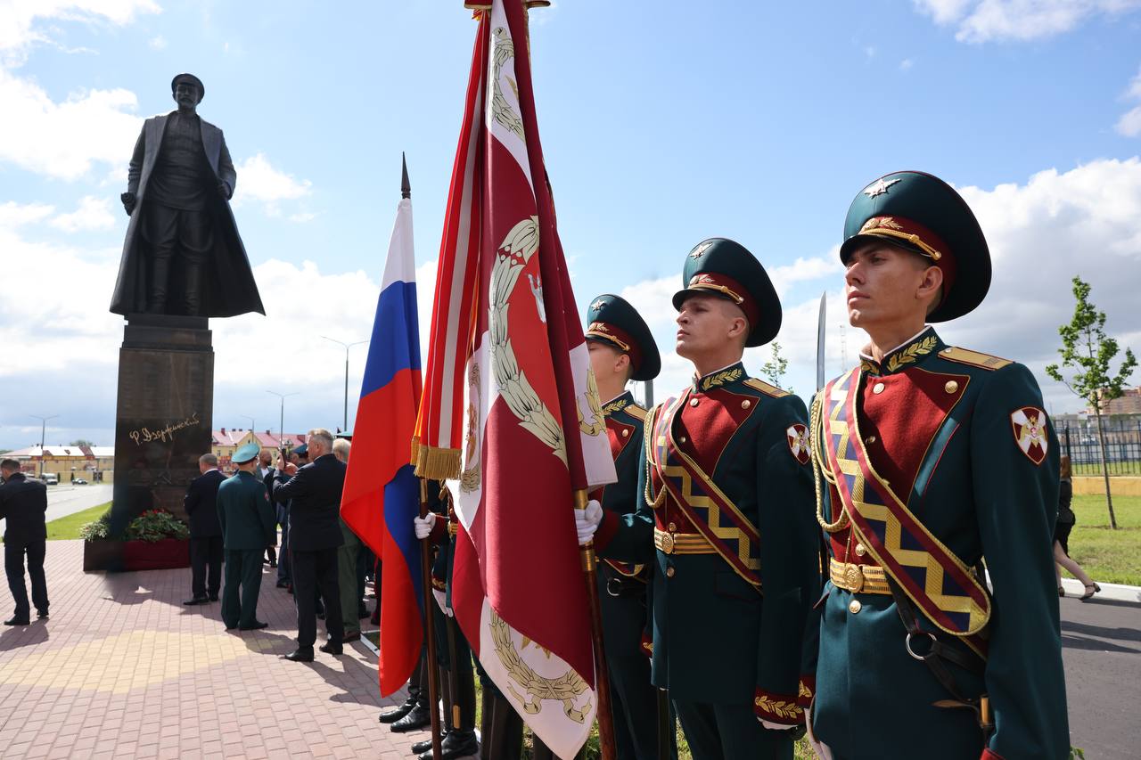 В канун векового юбилея Отдельной орденов Суворова, Жукова, Ленина и Октябрьской революции Краснознаменной дивизии оперативного назначения имени Ф. Э. Дзержинского (ОДОН) войск национальной гвардии России директор Росгвардии генерал армии Виктор Золотов вручил соединению государственную награду и принял участие в церемонии открытия памятника основателю соединения.