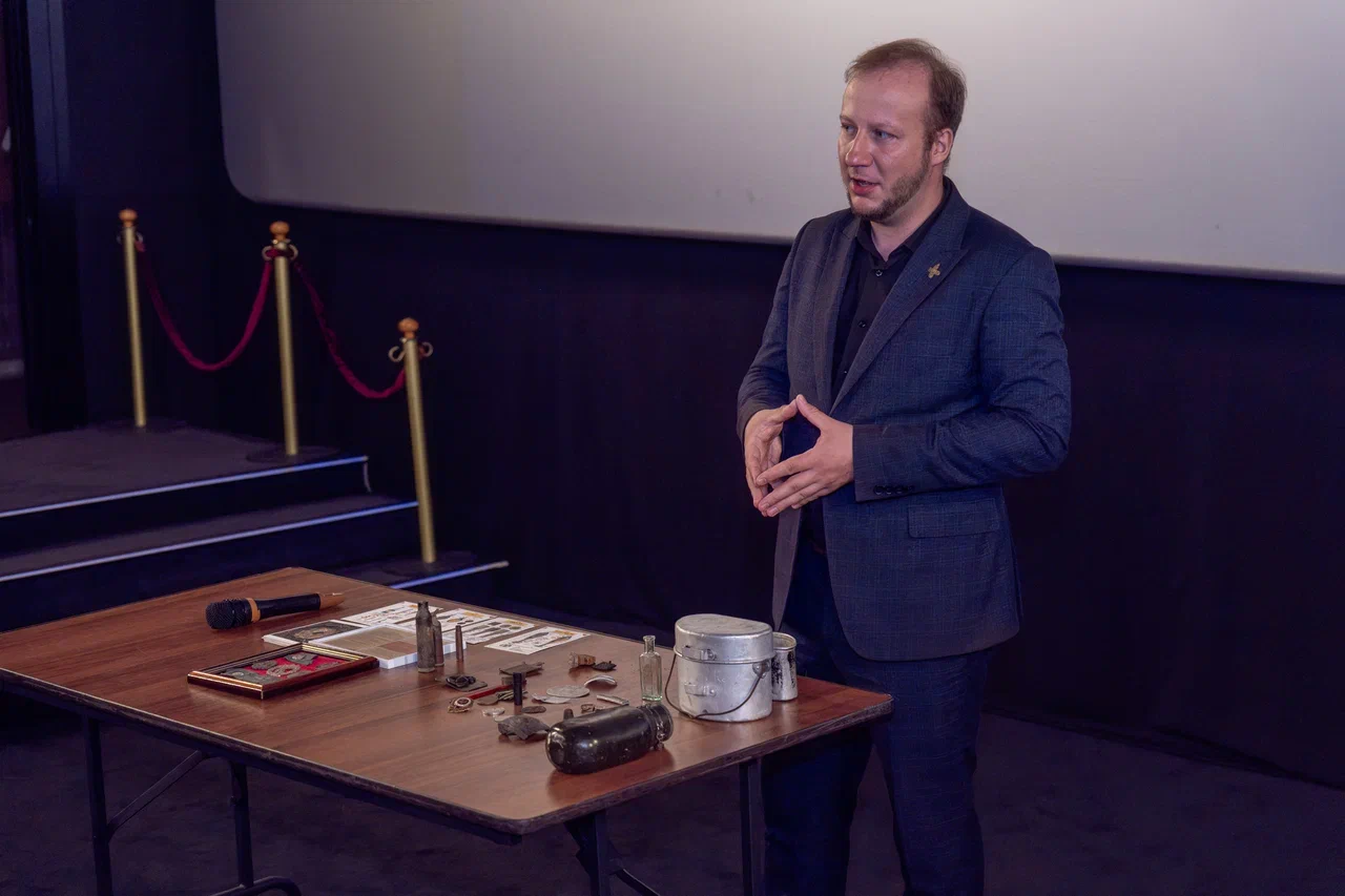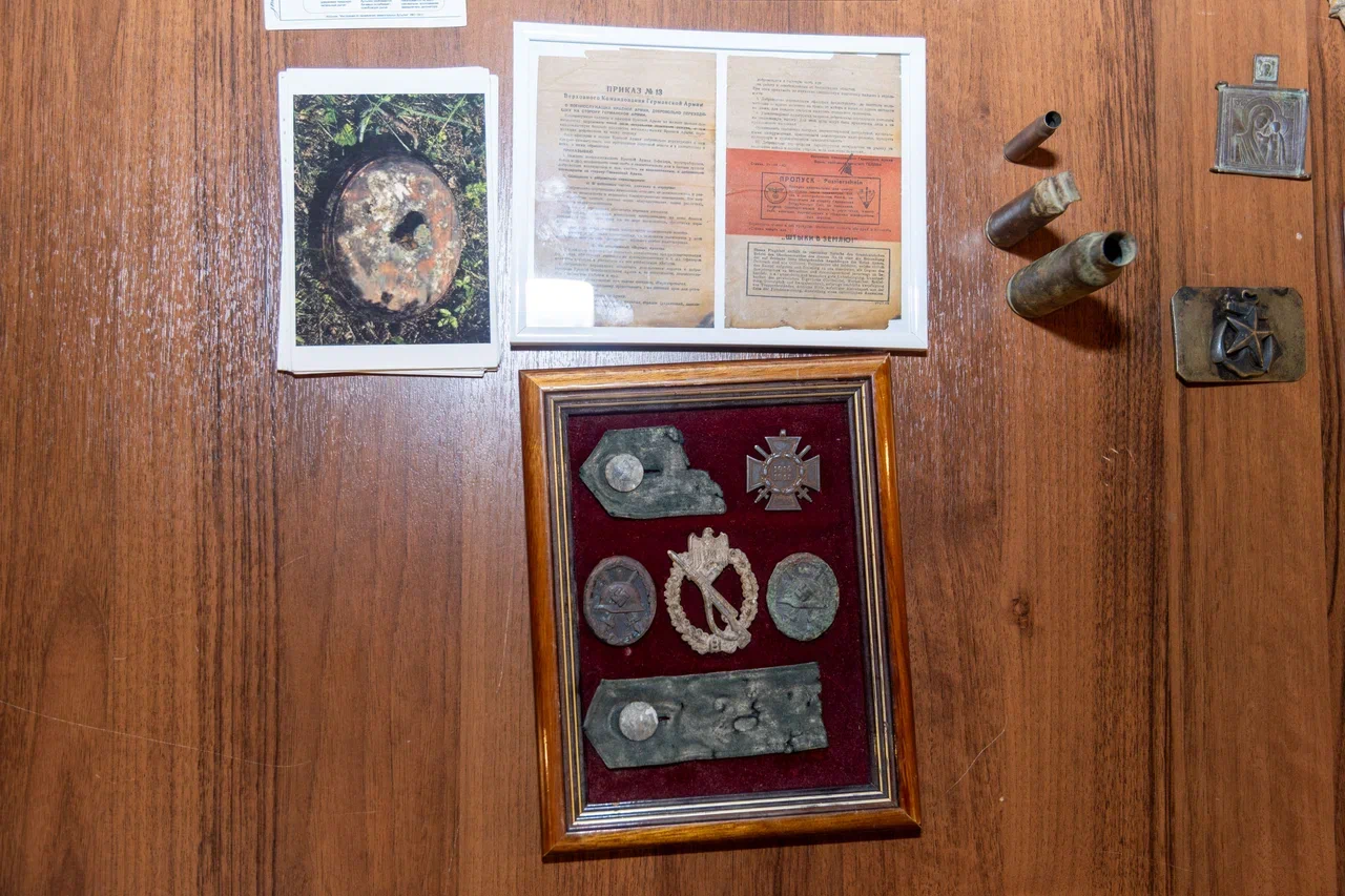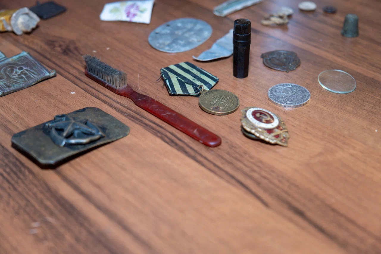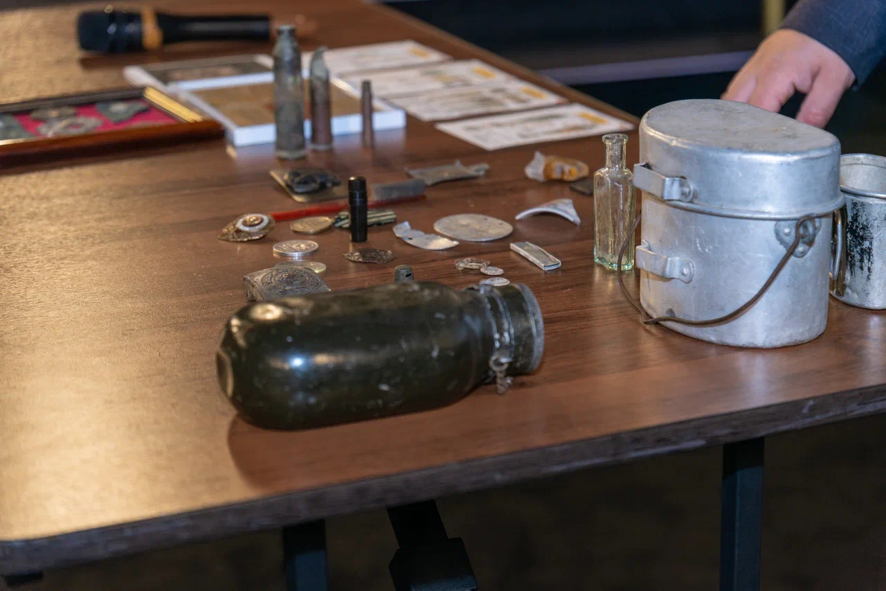 Кроме того, Михаил Дзюбенко познакомил школьников с предметами, найденными на местах боев. Дети смогли прикоснуться к истории Великой Отечественной, рассмотреть награды и личные вещи красноармейцев.