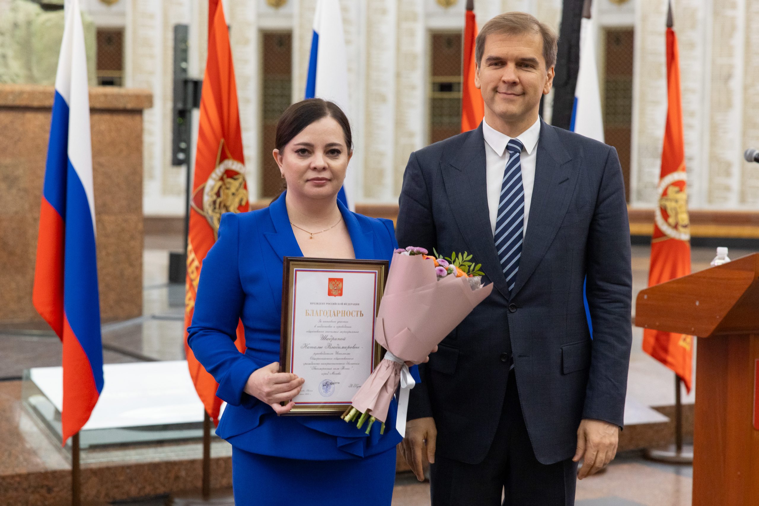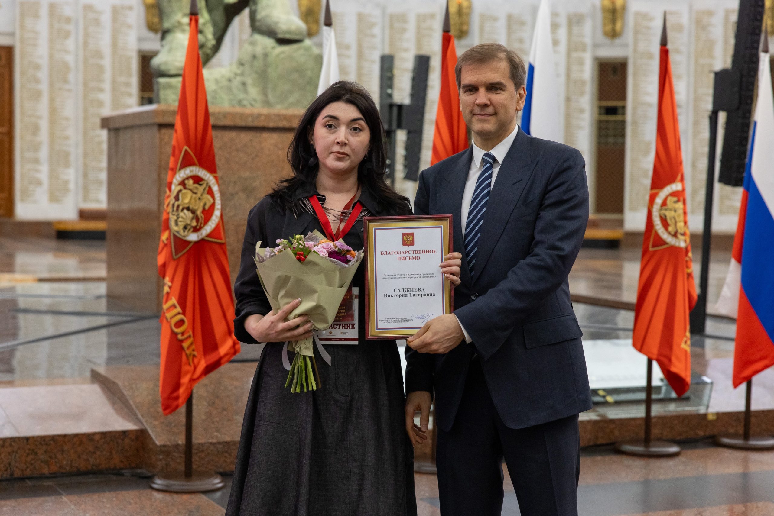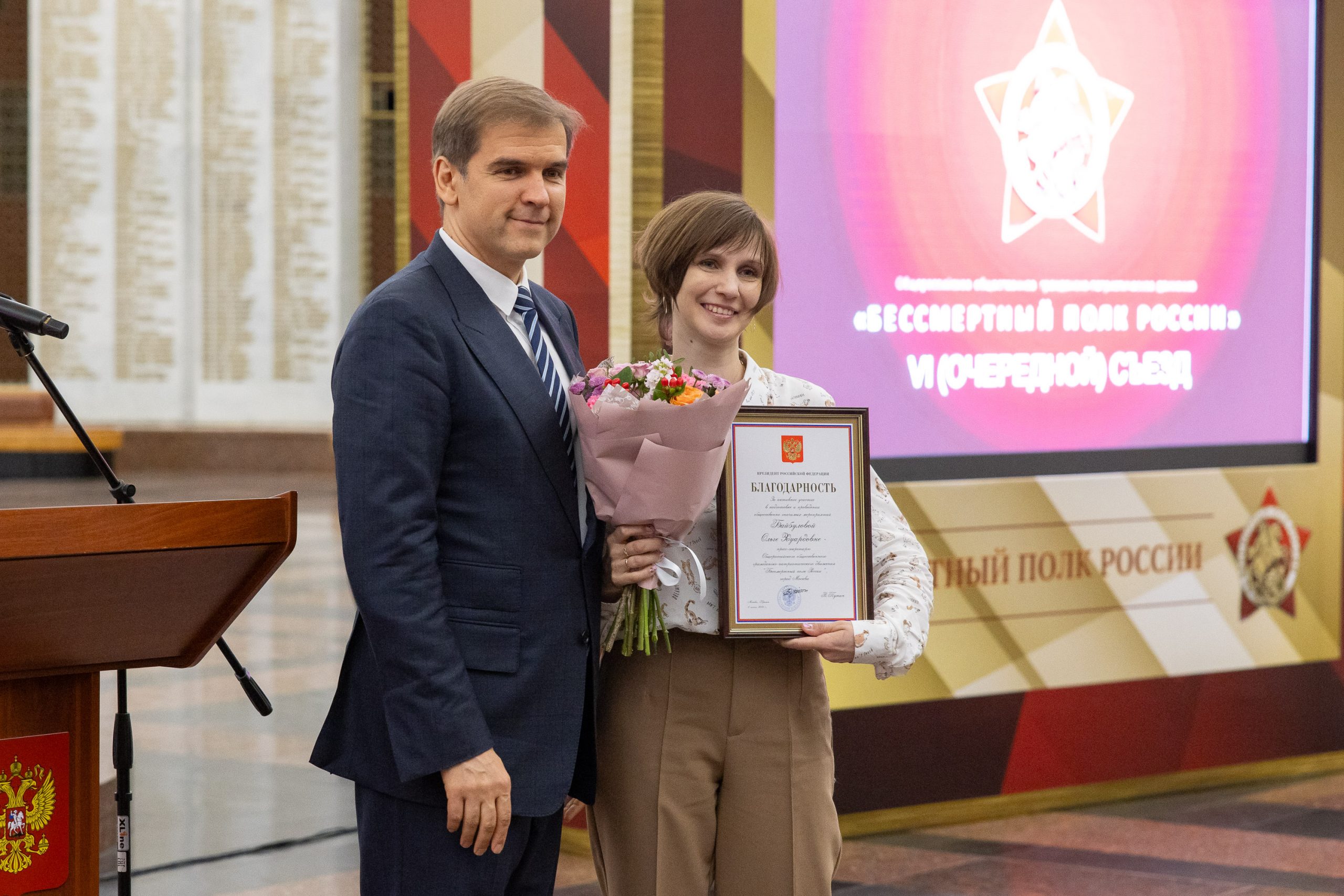 Активистам Общероссийского общественного гражданско-патриотического движения «Бессмертный полк России» в Музее Победы вручили благодарственные письма от Президента России Владимира Путина. Церемония состоялась в рамках шестого Всероссийского съезда движения.
