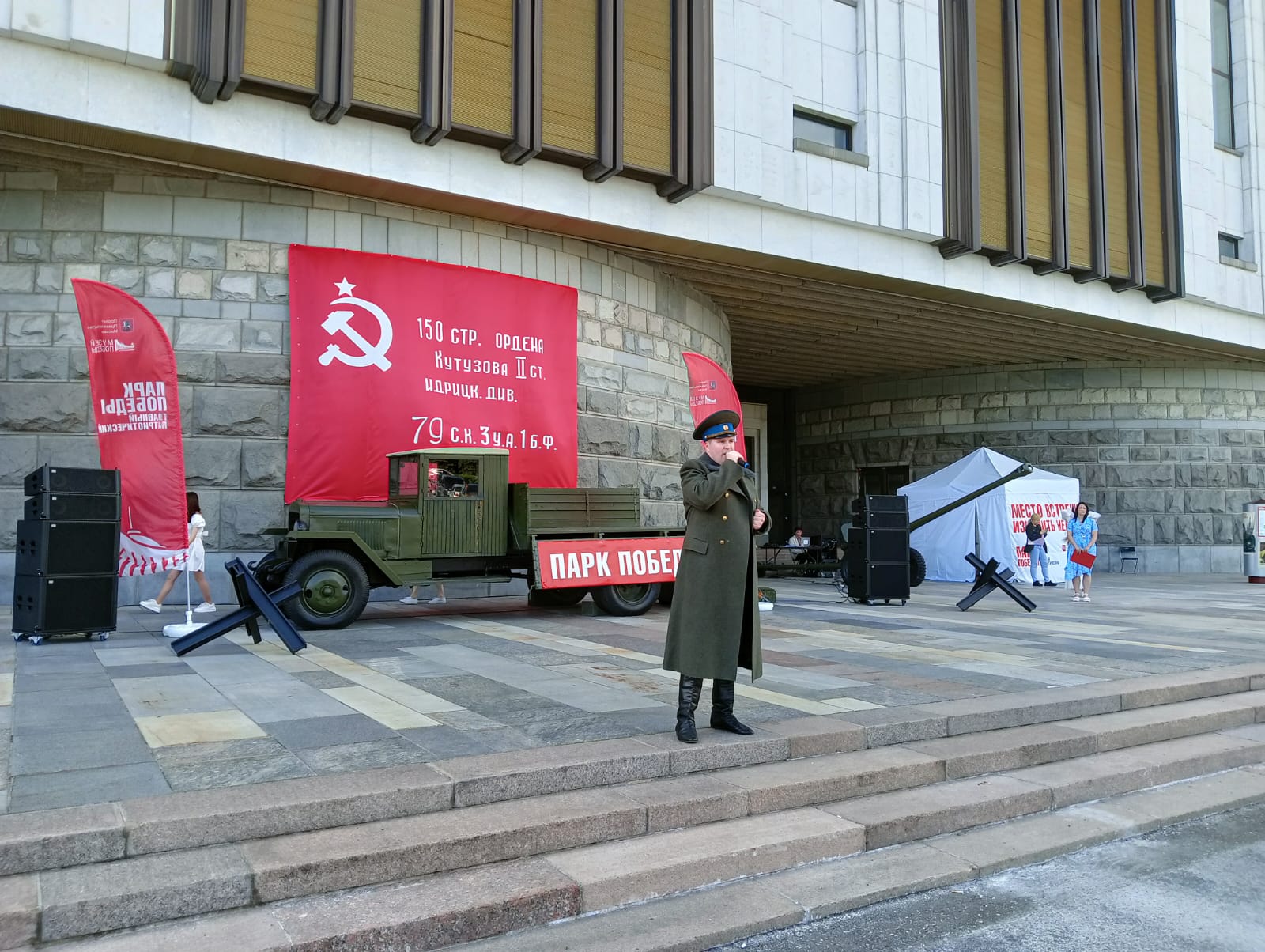 На площадке «Фронтовая агитбригада» состоялся мемориальный концерт. С легендарной полуторки прозвучали песни о войне и ее героях.