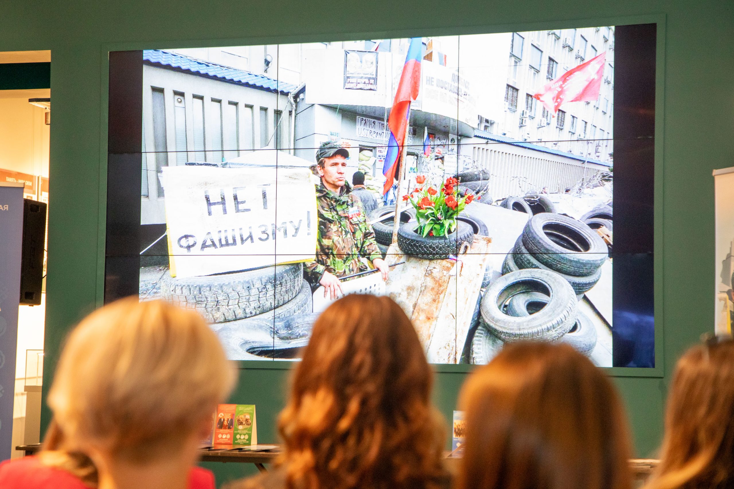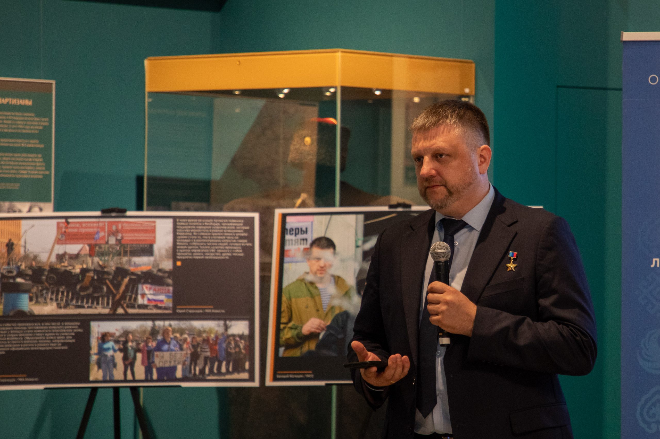 В Музее Победы состоялась презентация фотовыставки «Русская весна. Луганск. 2014: Даты, люди, события». В экспозиции представлено около 30 фотографий, которые отражают ключевые моменты народного сопротивления, а также момент создания ЛНР. Герой Республики Алексей Карякин был участником тех событий.