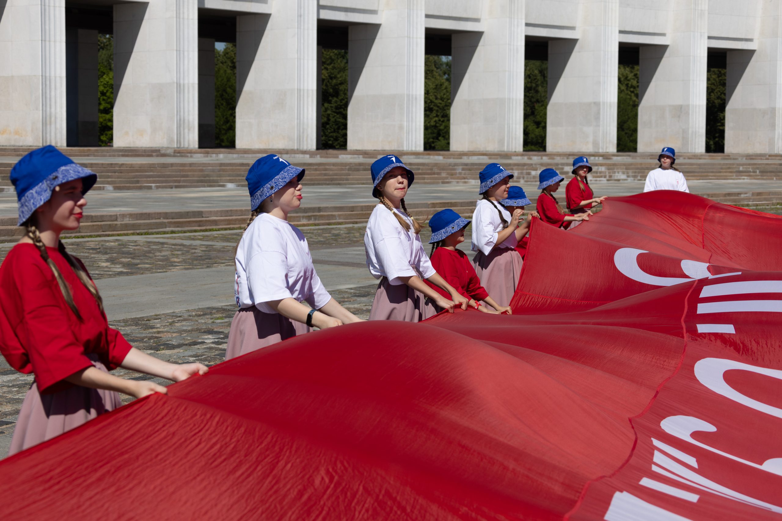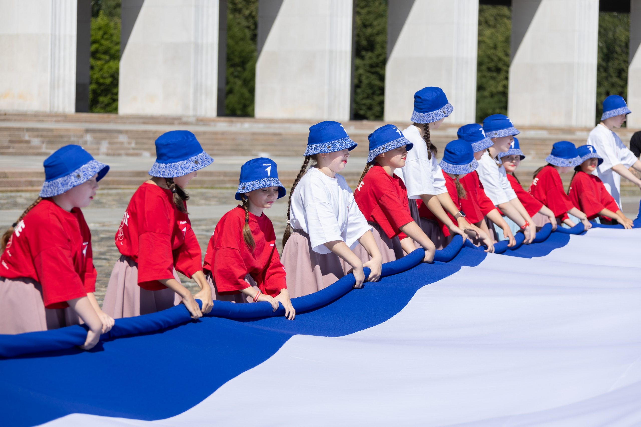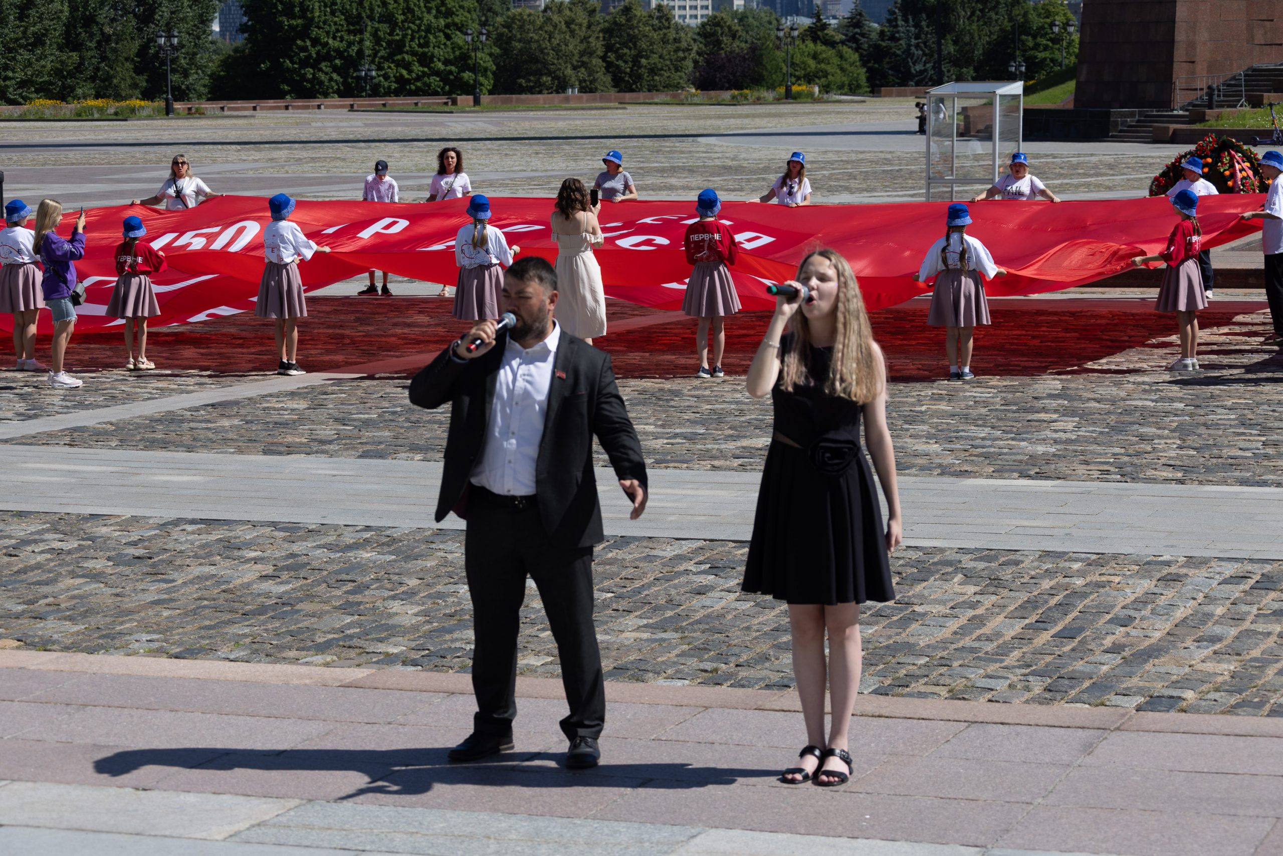 У стен главного здания Музея Победы на Поклонной горе состоялась Всероссийская акция «Наша страна — наша Россия». Участники яркого события под патриотические песни развернули государственный флаг Российской Федерации и копию Знамени Победы — полотнища площадью 200 квадратных метров.