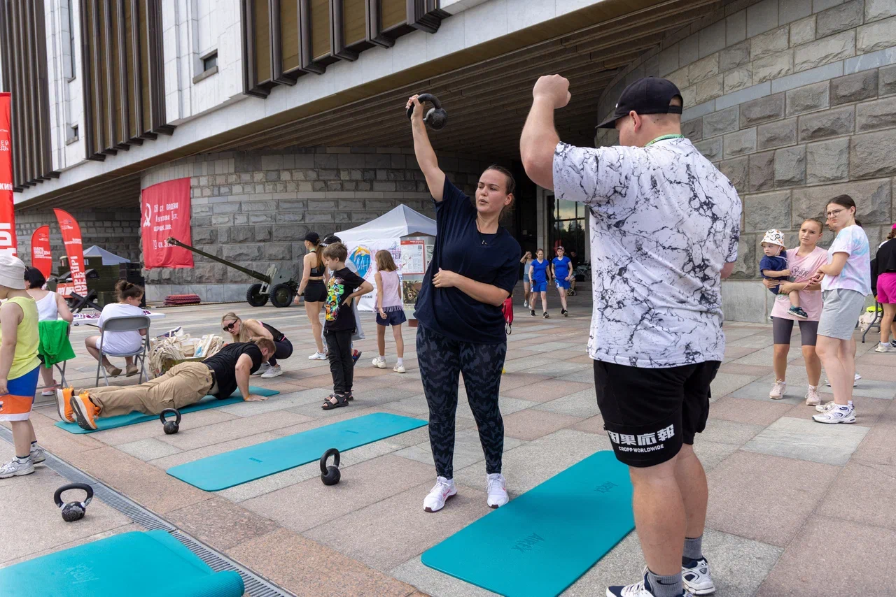Кроме того, гости смогли посетить городошную и шахматную площадки, покататься на уникальном мини-танке «Термит», принять участие в семейных эстафетах, пострелять в пневматическом тире и познакомиться с основами оказания первой помощи.