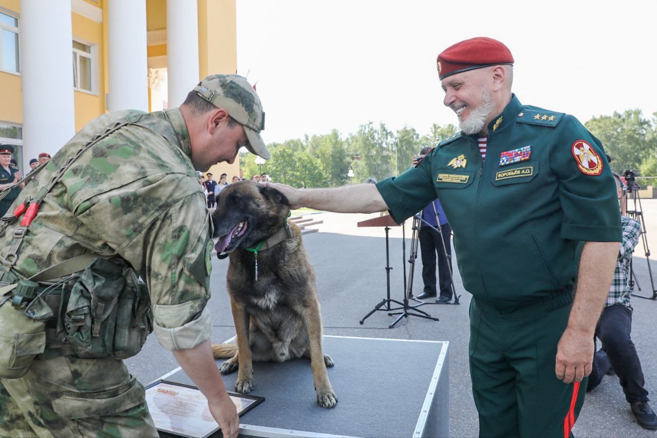 По поручению директора Росгвардии генерала армии Виктора Золотова заместитель главы ведомства генерал-полковник Алексей Воробьев вручил кинологам Росгвардии ведомственные награды и поздравил специалистов с профессиональным праздником — 115-й годовщиной со Дня образования кинологических подразделений войск правопорядка.