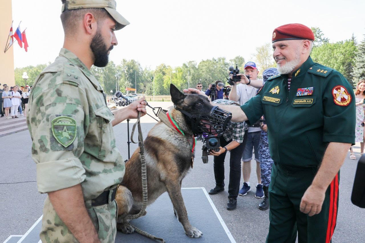 От имени директора Росгвардии генерала армии Виктора Золотова генерал-полковник Алексей Воробьев поздравил ветеранов службы, кинологов ведомства и членов их семей со 115-й годовщиной со Дня образования кинологических подразделений войск национальной гвардии Российской Федерации и пожелал благополучия, крепкого здоровья и нашей скорейшей победы в специальной военной операции.