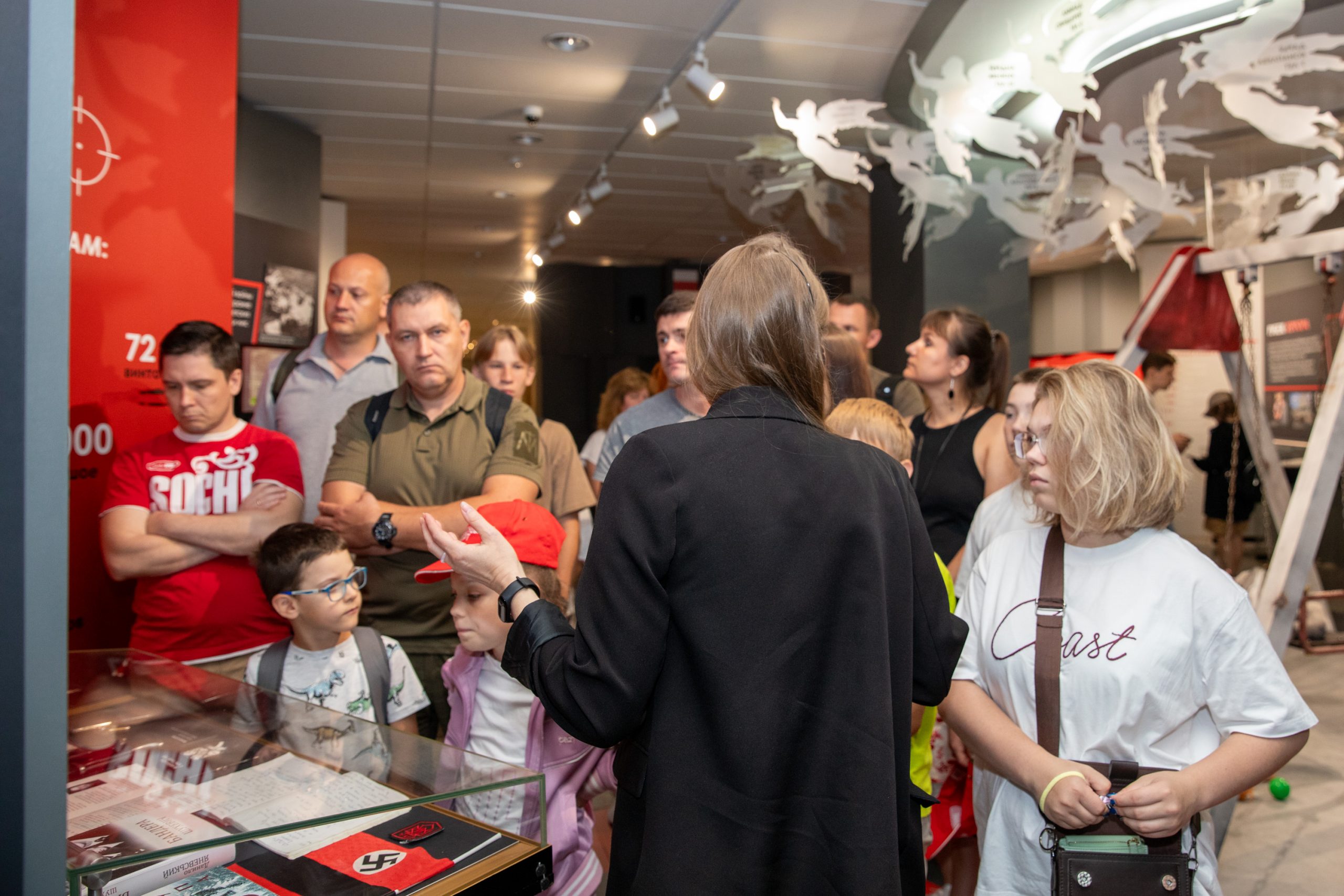 Музей Победы посетили участники специальной военной операции и их родные. Для гостей провели экскурсии по уникальной иммерсивной экспозиции «Подвиг Народа» и выставке «Обыкновенный нацизм».